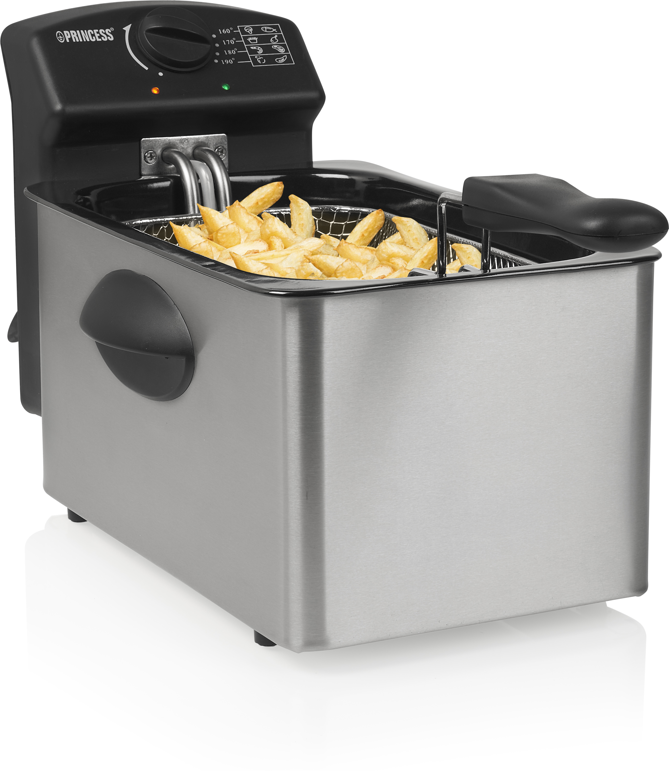 ¿Quiere preparar patatas crocantes para toda la familia? ¡Entonces los 2000 W y los 4 litros de capacidad de la freidora 182642 de Princess son lo que necesita! El termostato permite regular la temperatura de 130 °C a 190 °C. Es perfecta para preparar pollo, patatas, pescado o donuts.\n\nSector frío para preparar platos más saludables\nLa freidora de Princess viene equipada con un sector frío que evita los malos olores, hace que los restos de comida no se quemen y mantiene el aceite limpio durante más tiempo. ¡No más trocitos quemados en las patatas crocantes!\n\nPotencia de 2000 W\nAdemás de su elegante diseño de acero inoxidable, cuenta con 2000 W de potencia que permiten calentar el aceite en un santiamén. Y tiene 4 litros de capacidad, por lo que es ideal para preparar «snacks» para una fiesta o para toda la familia.\n\nFácil de limpiar\nEl interior extraíble de esmalte hace que la limpieza sea pan comido. Deje que la freidora se enfríe, quite el aceite de la cuba y colóquela en el lavavajillas junto con la cesta. ¡Todas las piezas son desmontables, así que es muy fácil de limpiar!\n\nContenido de la caja:\nFreidora 182642 de Princess y manual