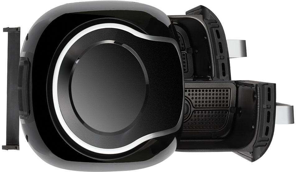 Russell Hobbs SatisFry Air Dual Basket. Tipo de producto: Freidora de aire caliente, Capacidad: 8,5 L, Temperatura (min): 30 °C. Tipo de construcción: Doble, Color del producto: Negro, Acero inoxidable, Tipo de control: Tocar. Tipo de visualizador: LED. Potencia: 1800 W. Ancho: 322 mm, Profundidad: 385 mm, Altura: 412 mm