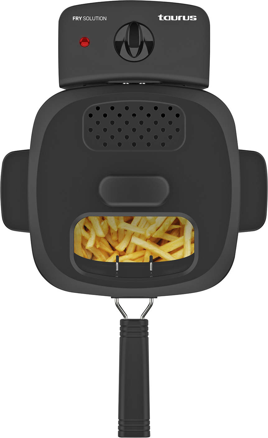 Frituras sabrosas, deliciosa y listas rápidamente con la freidora compacta Fry Solution. Es una freidora compacta que ofrece resultados rápidos gracias a su gran potencia de 2000W.\n\nAlta potencia\nCuenta con una capacidad de 1.5 litros que equivale a unos 400 gramos de patatas aproximadamente y con una elevada potencia de 2000W que consigue óptimos resultados en muy poco tiempo.\n\nFormato compacto\nFry Solution es una freidora que da solución a todas esas personas que desean una freidora compacta para un uso individual o en pareja pero con un gran potencia.\n\nTemperatura ajustable\nGracias a su regulador de temperatura podrás controlar en todo momento la cocción y ajustar la temperatura del aceite entre los 150º y 190ºC. Consigue resultados crujientes en poco tiempo.\n\nApta para freír con tapa\nAdemás, para evitar cualquier posible salpicadura, Fry Solution permite freír con la tapa puesta, consiguiendo así una cocina libre de humos y olores.\n\nTotalmente desmontable\nPara facilitar al máximo la tarea de la limpieza, los componentes de la freidora compacta Fry Solution de Taurus son totalmente desmontables y aptos para el lavavajillas.