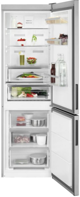 Frigorífico combi Multiflow de libre instalación de 1.86 mts, sistema de refrigeración independiente Twintech, display LED en puerta, Cajón LongFresh 0º, puerta plana, tirador integrado en la puerta, Inox, Clase A++.\n\nCajón FreshBox, conserva la carne y el pescado frescos más tiempo\nEste frigorífico combi tiene un cajón independiente que te permite preservar la frescura de la carne y el pescado durante más tiempo conservándolos a una temperatura más baja, y separados de otros alimentos para evitar el trasvase de sabores con otros.\n\nCajón FreshBox, conserva la carne y el pescado frescos más tiempo\nEste frigorífico combi tiene un cajón independiente que te permite preservar la frescura de la carne y el pescado durante más tiempo conservándolos a una temperatura más baja, y separados de otros alimentos para evitar el trasvase de sabores con otros.\n\nTwinTech®, conserva la frescura de los alimentos\nTodo buen festín comienza con los ingredientes impecablemente frescos. Nuestro sistema Twintech, con circuitos de refrigeración independientes, garantiza que los ingredientes se conserven en óptimas condiciones de temperatura y humedad. La fruta y verdura se conserva fresca y crujiente durante más tiempo salvaguardando su textura y sabor.\n\nMultiFlow, mantiene la temperatura estable para una mejor conservación\nLa tecnología MultiFlow mantiene una temperatura estable y un nivel de humedad idóneo para generar las mejores condiciones de conservación para los alimentos. Además, mantiene el frigorífico libre de escarcha, condensación y bacterias.\n\nDiseño premium. Para cocinas premium\nEl diseño elegante y contemporáneo del frigo se adapta a los demás aparatos de cocina cocina. Y el diseño avanzado requiere un espacio libre cero cuando se abre la puerta. Para una cocina sin fisuras.\n\n\nClase A++, un 21% menos de consumo energético que la clase A+\nConserva los alimentos con mayor eficiencia energética con este frigorífico combi A++, que consume un 21% menos de energía que la clase A+. Escoger un electrodoméstico con mejor clasificación energética no solo supone un ahorro en las facturas, también es más respetuoso con el medioambiente.