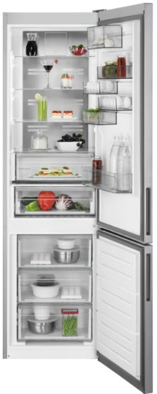 COOLING 360º, PROTECCIÓN PARA LA CALIDAD DE TUS INGREDIENTES\nAsegúrate de que la comida conserve una calidad óptima durante más tiempo con el sistema Cooling 360°. Distribuye constantemente aire frío a cada rincón, preservando la textura, los nutrientes y los sabores. Mientras que el interior de acero inoxidable restaura las temperaturas frías después de cada apertura de la puerta.\n\nREFRIGERACIÓN AVANZADA PARA UNA PROTECCIÓN SUPERIOR\nLos frigoríficos con sistema de refrigeración 360º están diseñados para proteger al máximo tus ingredientes. Su sistema de ventilación de aire garantiza la llegada de aire frío a cada esquina, además de la rápida recuperación de la temperatura de refrigeración tras la apertura de la puerta.\n\nORGANIZA LOS CONTENEDORES DE LA PUERTA COMO MEJOR TE CONVENGA CON CUSTOMFLEX\nEl sistema Customflex de AEG permite configurar las opciones de almacenamiento como quieras. Puedes desplazar y reorganizar fácilmente los contenedores modulares de la puerta maximizando el espacio de almacenamiento y adaptándolo a tus necesidades.\n\nCAJÓN EXTRA CHILL, PARA ALIMENTOS FRESCOS Y DELICADOS\nRalentiza la maduración de tus quesos y embutidos favoritos guardándolos en el cajón del Extra Chill. La zona mantiene una temperatura más baja que el resto del frigorífico.\n\nDESIGNLINE, DEJA QUE TU COCINA LLAME LA ATENCIÓN\nEl diseño contemporáneo de líneas puras de este frigorífico cobra vida gracias a la calidad de los materiales que aportan un toque de elegancia y armonía a tu entorno de cocina.