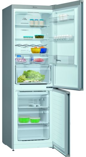 Una zona ?0°C? mucho más flexible\nDependiendo de la ocasión todos tenemos necesidades distintas, por eso, este cajón está pensado para adaptarse a ellas. Por ejemplo, si quieres que la carne y el pescado se conserven el doble de tiempo, cuentas con dos cajones independientes para poder organizar carnes y pescados por separado, evitando que se mezclen olores, y conservándolos a la temperatura adecuada. Si lo que necesitas es enfriar tus refrescos en la mitad de tiempo, llena hasta con 12 latas cada cajón, ¡y listo!\n\nDiseña tu propio espacio y congela todo lo que quieras.\nPodrás guardar todo tipo de alimentos en tu congelador, de cualquier tamaño y formato, gracias a la flexibilidad que aportan estas bandejas de cristal de seguridad, ubicadas entre los cajones. Si retiras uno o más cajones, puedes usarlas para apoyar copas de helado, cacerolas o cualquier otra cosa que necesite una superficie estable. Y si necesitas aún más espacio, puedes quitar las bandejas y tendrás un compartimento diáfano donde meter barras de pan enteras y otros alimentos de gran tamaño.\n\nA+++. No hay un frigorífico más eficiente.\nLos modelos con etiquetado energético A+++ conservan los alimentos de la forma más eficiente posible. Y además de cuidar el medioambiente, la reducción del consumo energético se nota también en tu bolsillo.\n\nTiradores verticales integrados\nEn Balay sabemos que hasta los pequeños detalles hay que cuidarlos. Por eso, los nuevos frigoríficos combinados de Balay Serie Cristal cuentan con tiradores verticales integrados, que van de arriba abajo, creando una línea continua de diseño sin elementos que sobresalgan. Todo lo necesario para que tu cocina sea elegante, cómoda y fácil de limpiar.\n\nIluminación LED: más durabilidad y eficiencia.\nNo solo consumen poco, es que comparadas con una bombilla convencional consumen ¡hasta 10 veces menos! Y además duran más, de modo que el ahorro se multiplica. Si aún no lo ves claro, echa un vistazo al interior del frigorífico: los LED iluminan con claridad hasta el último rincón de forma progresiva, para permitir que la vista se adapte de forma natural y que ni un tomate cherry se quede olvidado al fondo del cajón. Además, los frigoríficos ExtraFresh Comfort disponen de una columna LED lateral.\n\nCajón ExtraFresh\n¿Quieres mantener durante más tiempo tus frutas y verduras? Aquí tienes el compartimento que estabas buscando, ya que te ofrecerá las condiciones óptimas de conservación para frutas y verduras, gracias a su regulador de humedad. Para los combinados ExtraFresh parece que no pasa el tiempo.\n\nBotellero cromado: un espacio ideal para tus botellas.\nDeja de colocar las botellas en los sitios más insospechados de tu frigorífico, porque con el botellero cromado, organizar tus bebidas será de lo más cómodo y sencillo. Además, se coloca igual que cualquier otra bandeja del frigorífico, para que tus botellas tengan la estabilidad y la seguridad adecuadas, y