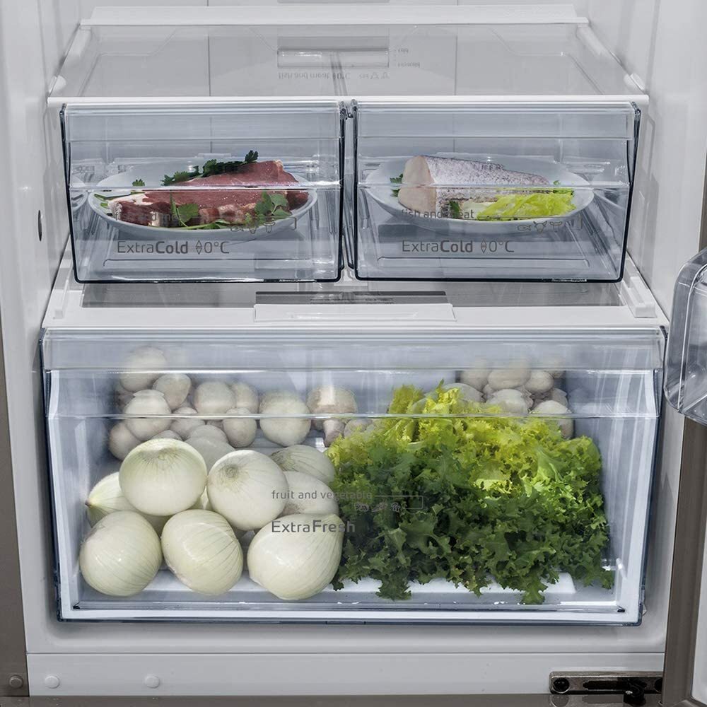 Para que tus frutas y verduras se conserven más y mejor, puedes regular la humedad dentro del cajón ExtraFresh. Ahorra espacio y mejora la distribución del frigorífico con un práctico botellero cromado. Los tiradores integrados verticales forman una línea continua de diseño que además te facilita la limpieza. Al abrir la puerta, la iluminación LED se enciende gradualmente, con un efecto más natural y atractivo. También tiene el cajón ExtraCold ?0°C?, especial para carnes y pescados, donde se mantendrán frescos durante más tiempo. Dimensiones del producto: 1860 mm (alto) x 600 mm (ancho) x 660 mm (profundo) .Especificaciones: .- Color Gris Antracita.- Marca Balay.- Tensión 240 Voltios.- Capacidad 324 Litros.- Tipo de estante Vidrio.- Nombre del modelo 3KFE565GI.- Número de estantes 4.- Tipo de instalación Independiente.- Sistema de descongelación Automático.- Dimensiones del producto: largo x ancho x alto 66 x 60 x 186 centímetros