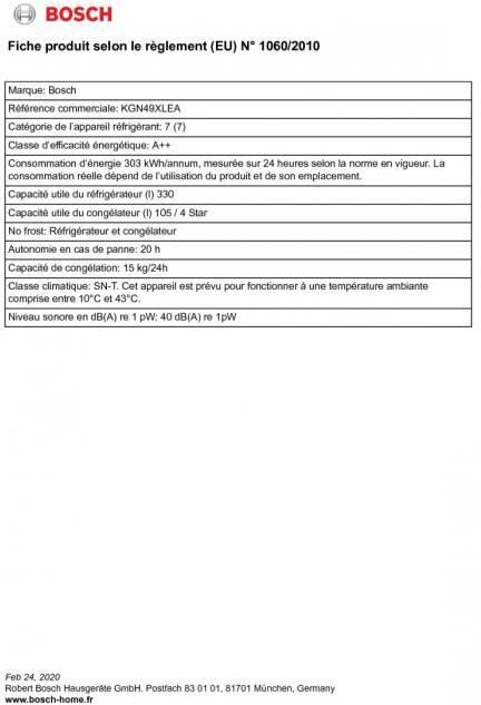 ''Sin escarcha'' (No Frost): Si Alarma puerta abierta: Si Alarma temperatura: Si Autonomía en horas (duración subida temperatura): 20 Bar integrado (Home Bar): No Capacidad: De 351 a 550 L Categoría de hogar aparato frigorífico modelo: 7 (Frigorífico-Congelador) Clase climática: SN-T. Este dispositivo está diseñado para usarse a una temperatura ambiente entre 10°C y 43°C Clase