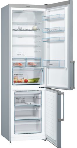 Temperatura constante dentro del frigorífico\nLos sensores FreshSense supervisan y controlan constantemente la temperatura ambiente, del frigorífico y del congelador. El resultado es una temperatura constante dentro del frigorífico, independientemente de la temperatura exterior. Esto es un factor decisivo para una mayor frescura y sabor de tus alimentos.\n\nEl frigorífico que sabe cómo mantener el frío.\nActivar la función Refrigeración ""Super"" antes de ir a la compra bajará la temperatura durante un corto período de tiempo, y preparará tu frigorífico para introducir gran cantidad de alimentos calientes o temperatura ambiente y mantenerla en las condiciones óptimas.\n\nLo mejor para tus alimentos: una distribución uniforme del frío\nTemperatura homogénea en todo el frigorífico gracias a sus múltiples salidas de aire situadas en la pared trasera del interior del aparato. Las fluctuaciones de temperatura se minimizan y los tiempos de enfriamiento se reducen, lo que permite mejorar la conservación de los diferentes alimentos.\n\nMás comodidad y ahorro de energía\nEl control electrónico permite ajustar las temperaturas de la zona de refrigeración y congelación de forma independiente, en aquellos frigoríficos con circuitos de frío independientes.\n\nNunca vuelvas a descongelar tu frigorífico.\nDescongelar un frigorífico a mano puede ser un proceso largo y tedioso. Gracias a nuestros frigoríficos No Frost, podrás olvidarte para siempre de esta tarea. A diferencia de los frigoríficos convencionales, los frigoríficos No Frost no generan escarcha. De este modo, No Frost mantiene tu frigorífico sin escarcha y sin necesidad de descongelarlo manualmente.\n\nMejor iluminación, menor consumo\nIluminación fría, clara, de larga duración y mínimo consumo. Para que no pierdas detalle del interior de tu frigorífico.\n\nEasyAccess: bandejas de cristal extensibles\nLas bandejas EasyAccess de cristal son extensibles hasta 15 cm y cuentan con unos topes de seguridad antivuelco, lo que impide que puedan caerse alimentos o recipientes que hay sobre la bandeja. Un plus de flexibilidad en el iterior del frigorífico.\n\nAdemás, las frutas y verduras conservarán sus vitaminas y frescura durante más tiempo\nEl sistema VitaFresh favorece la frescura, creando las condiciones optimas de conservación de los alimentos durante más tiempo. Para ello cuenta con diferentes compartimentos: dos superiores, uno para carne y otro para pescado, donde se alcanza una temperatura cerca a 0ºC; y un tercero inferior para frutas y verduras. El cajón de frutas y verduras cuenta con un regulador de humedad que permite ajustarlo en función de los alimentos que hay en su interior: alta humedad, verduras, o baja humedad, frutas.