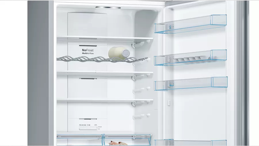 Bosch Serie 4 KGN49XIEA. Capacidad neta total: 438 L. Bisagra para puerta: Derecho, Tipo de visualizador: LED. Clase climática: SN-T, Nivel de ruido: 40 dB. Frigorífico, capacidad neta: 330 L, Antiescarcha (nevera), Luz interior de la nevera. Congelador, capacidad neta: 108 L, Capacidad de congelación: 15 kg/24h, Antiescarcha (congelador). Compartimiento de zona fresca. Clase de eficiencia de energía: E, Consumo de energía anual: 259 kWh. Color del producto: Acero inoxidable
