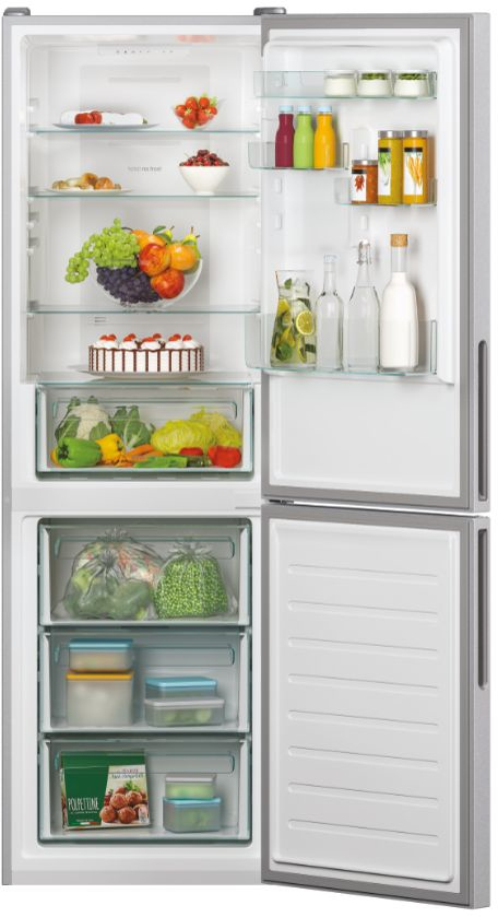 Candy CCE3T618FS. Capacidad neta total: 342 L. Bisagra para puerta: Derecho. Clase climática: ST, Nivel de ruido: 39 dB. Frigorífico, capacidad neta: 223 L, Antiescarcha (nevera), Luz interior de la nevera, Frigorífico, número de compartimentos: 4, Número de compartimientos para verduras: 1. Congelador, capacidad neta: 119 L, Capacidad de congelación: 5,4 kg/24h, Antiescarcha (congelador). Clase de eficiencia de energía: F, Consumo de energía anual: 319 kWh. Color del producto: Plata