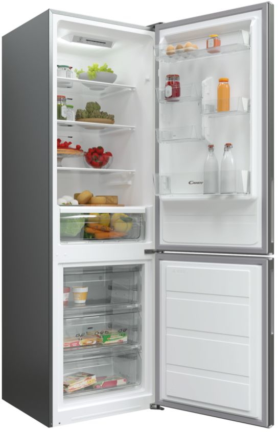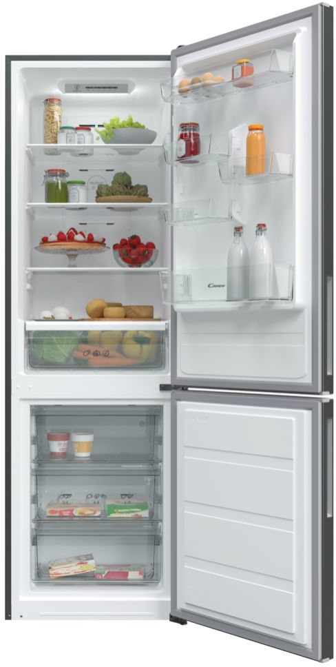 Candy CVBNM 6182XP/S. Capacidad neta total: 295 L. Bisagra para puerta: Derecho. Clase climática: N-T, Nivel de ruido: 40 dB. Frigorífico, capacidad neta: 219 L, Antiescarcha (nevera), Luz interior de la nevera, Frigorífico, número de compartimentos: 4, Número de compartimientos para verduras: 1. Congelador, capacidad neta: 76 L, Capacidad de congelación: 4 kg/24h, Antiescarcha (congelador). Consumo de energía anual: 286 kWh. Color del producto: Acero inoxidable