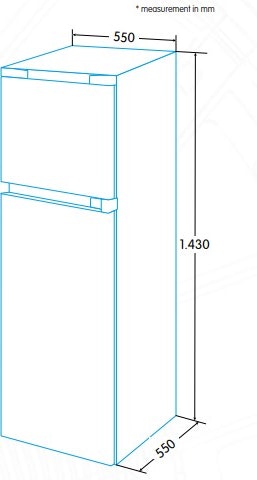 Frigorífico dos puertas estático de 1,40 m\nEficiencia energética A+\nFrío homogéneo en refrigerador\nTermostato regulable de temperatura\nCestón portaverduras de gran capacidad\nIluminación interior\nPuertas reversibles\nTirador integrado\nDimensiones (alto x ancho x fondo): 1430 x 550 x 550 mm\nCapacidad neta (l): 207 (166 + 41)