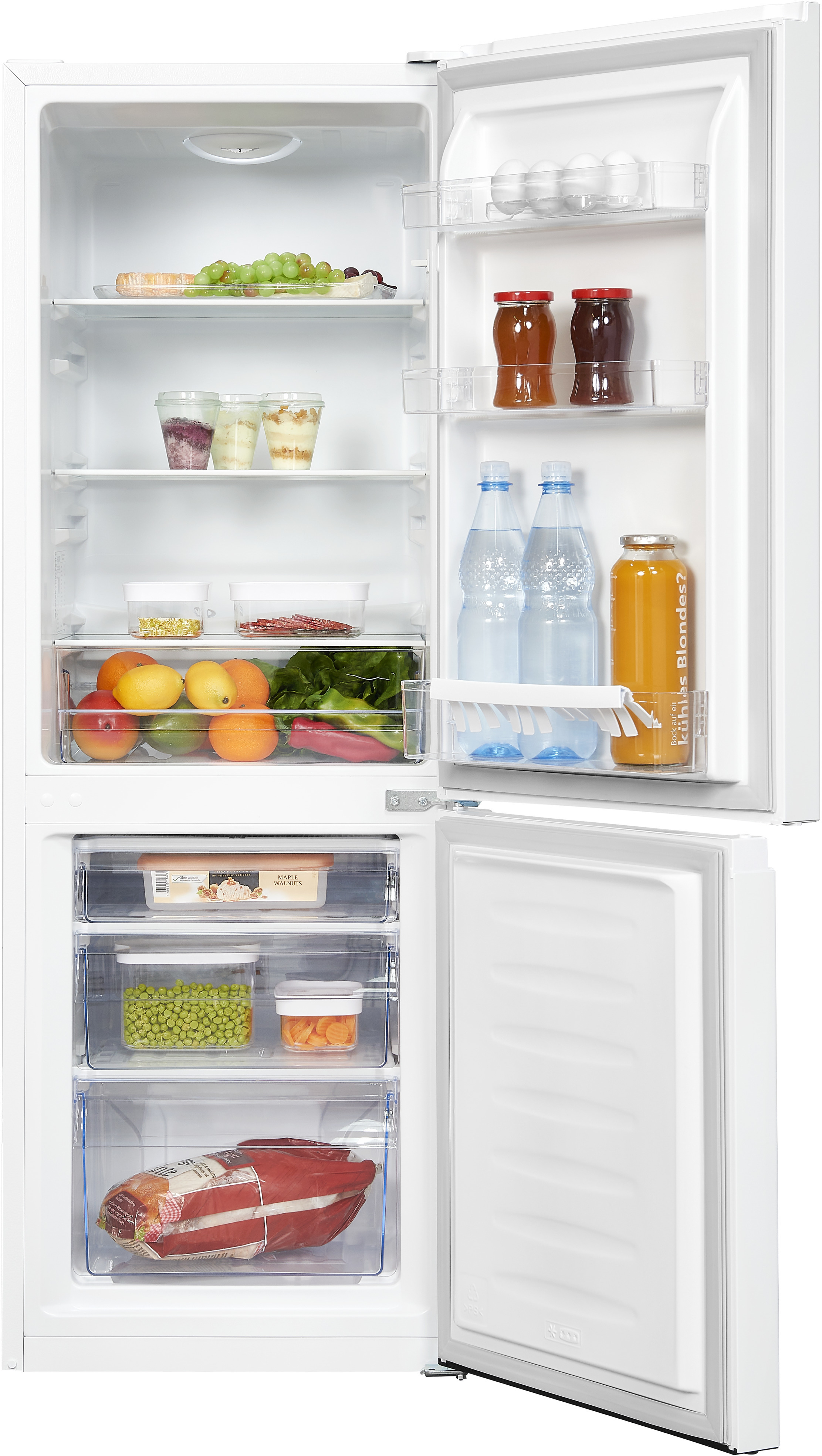 Exquisit KGC231-60-010E. Capacidad neta total: 175 L. Bisagra para puerta: Derecho. Clase climática: N-ST, Nivel de ruido: 39 dB. Frigorífico, capacidad neta: 122 L, Luz interior de la nevera, Frigorífico, número de compartimentos: 3, Número de compartimientos para verduras: 1. Congelador, capacidad neta: 53 L, Capacidad de congelación: 2,4 kg/24h. Clase de eficiencia de energía: E, Consumo de energía anual: 195,09 kWh. Color del producto: Blanco