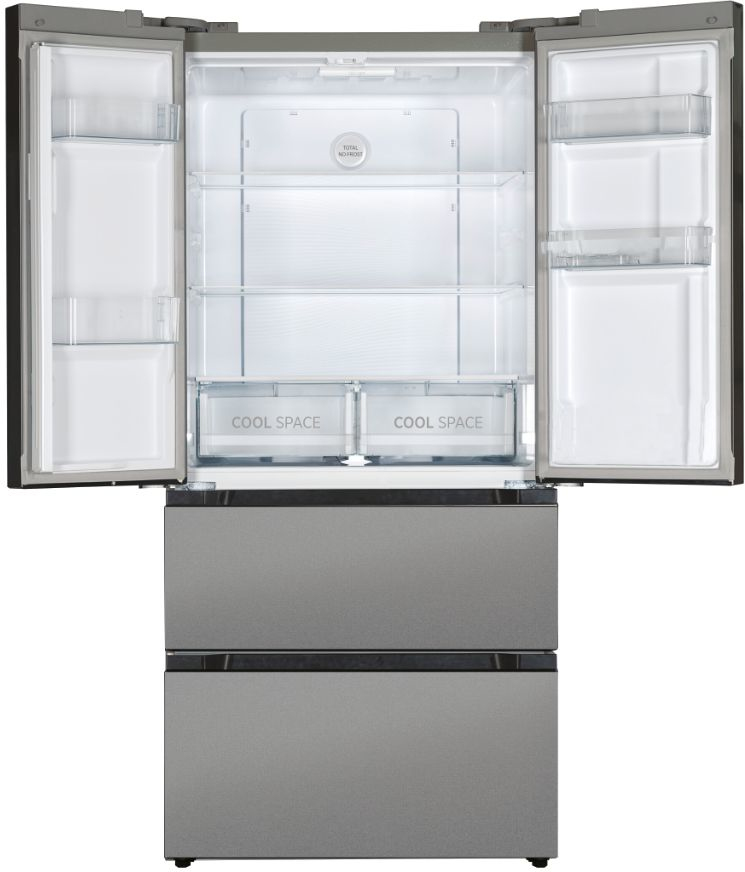 Hoover H-FRIDGE 700 MAXI HSF818FX. Tipo de instalación: Independiente, Diseño de producto: Puerta francesa, Color del producto: Acero inoxidable. Capacidad neta total: 436 L, Clase climática: T, Clase de emisión de ruido: C. Frigorífico, capacidad neta: 288 L, Tipo de lámpara: LED. Congelador, capacidad neta: 148 L, Posición congelada: Lateral, Tiempo de almacenamiento en caso de fallo de alimentación: 11 h. Clase de eficiencia de energía: F, Consumo de energía anual: 344 kWh, Escala de eficiencia energética: De la A a la G