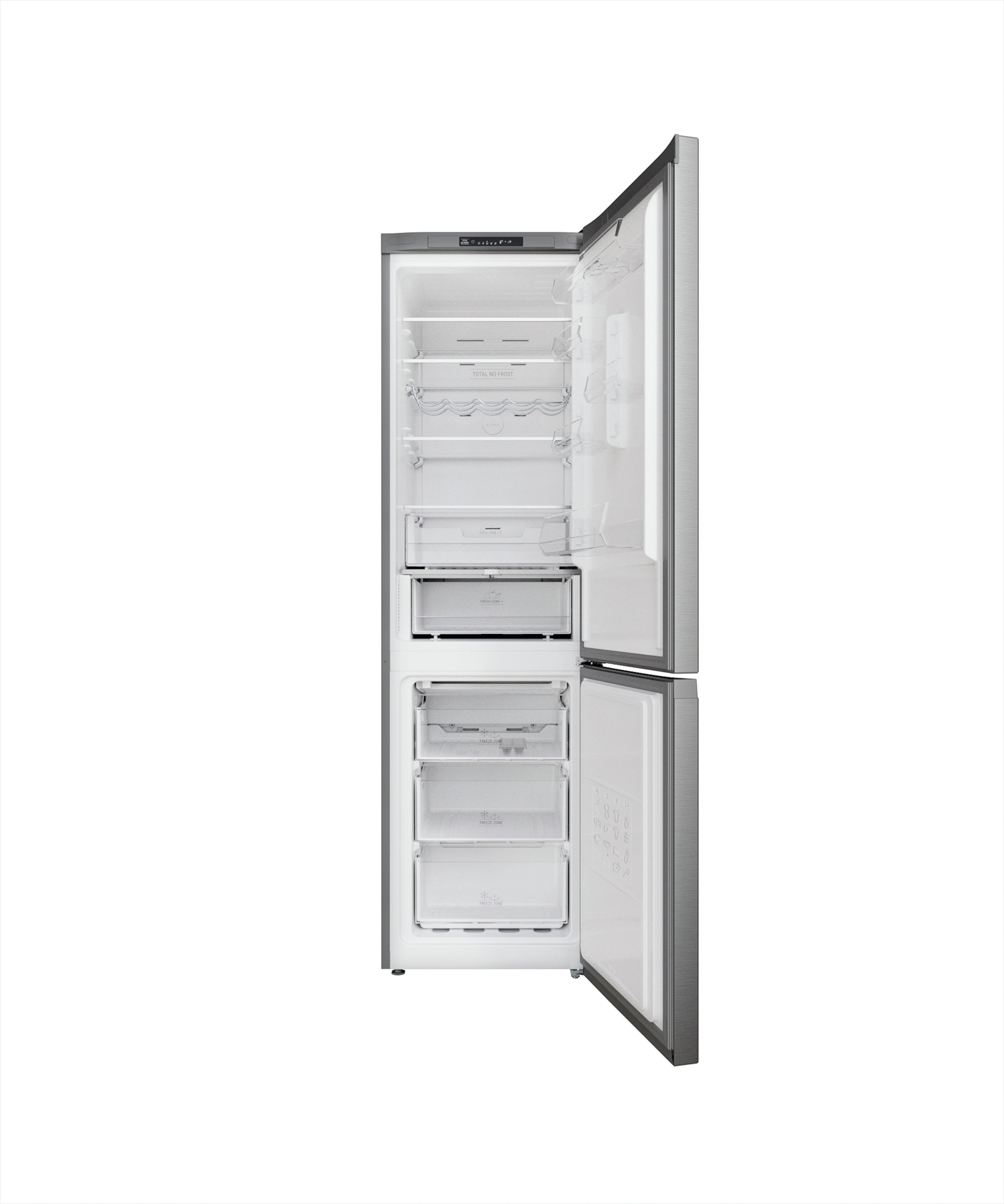 Hotpoint HAFC9 TI32SX. Capacidad neta total: 367 L. Bisagra para puerta: Derecho. Clase climática: SN-T, Nivel de ruido: 40 dB. Frigorífico, capacidad neta: 263 L, Antiescarcha (nevera), Sistema multi-flujo de aire (nevera), Luz interior de la nevera. Congelador, capacidad neta: 104 L, Capacidad de congelación: 11 kg/24h, Antiescarcha (congelador). Compartimiento de zona fresca. Clase de eficiencia de energía: E, Consumo de energía anual: 254 kWh. Color del producto: Acero inoxidable
