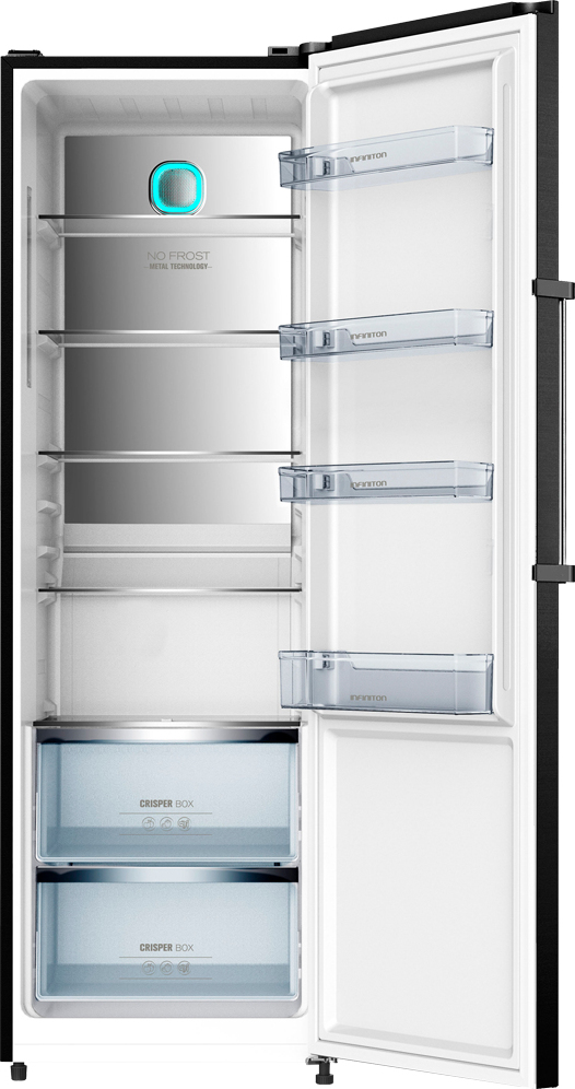 El frigorífico de una puerta CL-18BSTL Infiniton Special Black INOX tiene una capacidad total de 375 litros. \n\nLa clasificación energética es A++, lo que proporciona un ahorro energético pues tan solo consume 0.306 kWh al día. \n\nDisfruta de la tecnología Inverter, la cual te va a suponer un ahorro de energía y 10 años de garantía en el motor. Esta tecnología solo está disponible en la gama alta de frigoríficos Infiniton.\n\nLa clase climática que admite el frigorífico CL-18BSTL Infiniton es N / ST.\n\nGracias a la tecnología No Frost tus alimentos se conservarán mejor durante más tiempo, además, evita la formación de escarcha.\n\nPuedes elegir la dirección en la que vas a abrir la puerta de tu cooler porque es reversible, además, gracias a sus patas regulables en altura podrás ajustarlo al lugar en el que lo sitúes.\n\nEl interior del frigorífico de una puerta CL-18BSTL está equipado con los siguientes elementos:\n\n4 Baldas ajustables en altura\n2 Cajones CRISPER BOX\n4 Balcones en puerta\n \nEl interior está iluminado con una luz LED de bajo consumo que te permitirá ver todo el frigorífico sin problema.