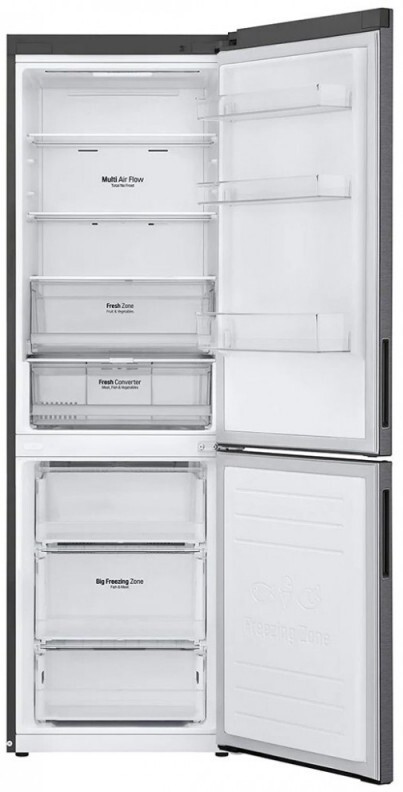 FICHA TÉCNICAMarcaLG ModeloGBP61DSXGCCategoríaFrigorifico Combi CARACTERÍSTICAS PRINCIPALESColor de las puertasInox grafito antihuellasDimensiones sin puerta (Ancho x Alto x Fondo)595 x 1860 x 615 mmDimensiones con puerta (Ancho x Alto x Fondo)595 x 1860 x 682 mmVolumen útil Total341 litrosVolumen Frigorífico Útil234 litrosVolumen Congelador Útil107 litrosRefrigeranteR600aNivel sonoro35 dBEficiencia energética ( Escala A a G)DConsumo energético214 kWh/añoAutonomía sin corriente9hrCapacidad de congelación10kg/24HrDisplayLED ExteriorTiradorIntegrado lateralPuerta reversibleSíSensores digitalesSíCongelación rápidaSíEnfriamiento rápidoSíAlarma en puertaSíModo EcoSíSmart DiagnosisSíRefrigeranteR600aSmart Inverter CompressorSí COMPARTIMENTO FRIGORÍFICOLuz interiorLEDMulti-Air FlowSíBaldas de Cristal TempladoSí (2)Compartimentos transparentes en puertaSíEspacio para botellas de 2lSíDoor CoolingSíFRESHConverterSíHueveraSí COMPARTIMENTO CONGELADORBandeja de HieloSíCajón Big ZoneSíBaldas de cristal templadoSí (2)Cajones transparentesSí (3)El producto lo suministraremos con los accesorios y características dadas por el fabricante.