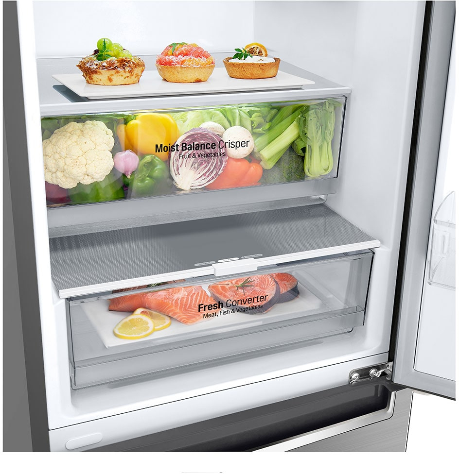 LG GBB61PZGCN1. Capacidad neta total: 341 L. Bisagra para puerta: Derecho. Clase climática: SN-T, Nivel de ruido: 35 dB. Frigorífico, capacidad neta: 234 L, Antiescarcha (nevera), Sistema multi-flujo de aire (nevera), Luz interior de la nevera. Congelador, capacidad neta: 107 L, Capacidad de congelación: 10 kg/24h, Antiescarcha (congelador). Compartimiento de zona fresca. Clase de eficiencia de energía: C, Consumo de energía anual: 171 kWh. Color del producto: Platino, Plata
