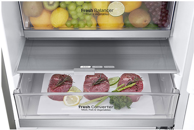 Inverter Linear Compressor\n10 años de garantía\nEl compresor Inverter Linear Compressor de LG está formado por menos componentes por lo que produce menos ruido que un compresor convencional. Además, ahorra más energía y proporciona mayor durabilidad.\n\nNatureFRESH\nDeleita a tus sentidos\nEl sistema NatureFRESH controla de forma precisa la temperatura de tu frigorífico para conservar los alimentos frescos durante más tiempo. Cuenta con 9 salidas de aire junto a cada balda.\n\nLINEARCooling\nAlimentos frescos más tiempo\nEl compresor Inverter Linear Compressor de LG ayuda a mantener la temperatura constante del frigorífico permitiendo mantener mantener el frescor un 82% más.\n\n24 horas de enfriamiento uniforme\nControl preciso de la temperatura.\n\nDoorCooling+\nEnfría hasta un 32% más rápido\nLa salida de aire en la parte superior frontal del frigorífico en forma de cascada permite enfriar bebidas y alimentos más rápido y reduce la diferencia de temperatura entre el interior y la puerta del frigorífico.\n\nFRESHBalancer CON MAGIC CRISPER\nNivel óptimo de humedad\nRegula y mantiene la humedad óptima de frutas y verduras un 20% más frescas pasados 7 días.\n\nFRESHConverter\nAdapta la temperatura\nCajón multitemperatura ""especial cervezas"": adapta la temperatura del cajón (entre -2ºC y 3ºC) a cada tipo de alimento: cerveza, verduras, carne o pescado.\n\nComodidad y usabilidad\nSe adaptan a tus necesidades\n'El botellero y la balda completamente plegable facilitan el almacenamiento de los alimentos adaptándose a tus necesidades.\n\nBalda plegable\nPerfecta para ollas y botellas\nLa balda completamente plegable te permite colocar alimentos de cualquier tamaño y crea el espacio necesario para recipientes altos y voluminosos como ollas y botellas.\n\nSmartThinQ\nControla tu frigorífico estés donde estés\nA través de la app SmartThinQ™ de tu smartphone podrás controlar determinadas funciones (control de temperatura, congelación rápida, activación del filtro Pure N Fresh…).\n\nDiseño premium y resistente\nEstilo Minimalista elegante\nEl nuevo frigorífico combi es el epítome del refinamiento tanto en función como en estilo. Tiene un diseño minimalista que maximiza la elegancia y la comodidad. Ahora, disfruta de la practicidad y el lujo en tu propia cocina.