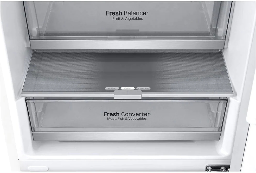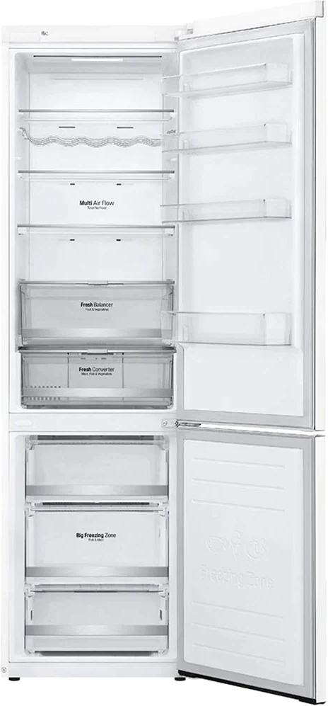 LG GBB72SWDMN. Capacidad neta total: 384 L. Tipo de visualizador: LED. Clase climática: SN-T, Nivel de ruido: 36 dB. Frigorífico, capacidad neta: 277 L, Antiescarcha (nevera), Sistema multi-flujo de aire (nevera), Frigorífico, número de compartimentos: 4. Congelador, capacidad neta: 107 L, Capacidad de congelación: 8 kg/24h, Antiescarcha (congelador). Compartimiento de zona fresca. Clase de eficiencia de energía: E, Consumo de energía anual: 269 kWh. Color del producto: Blanco