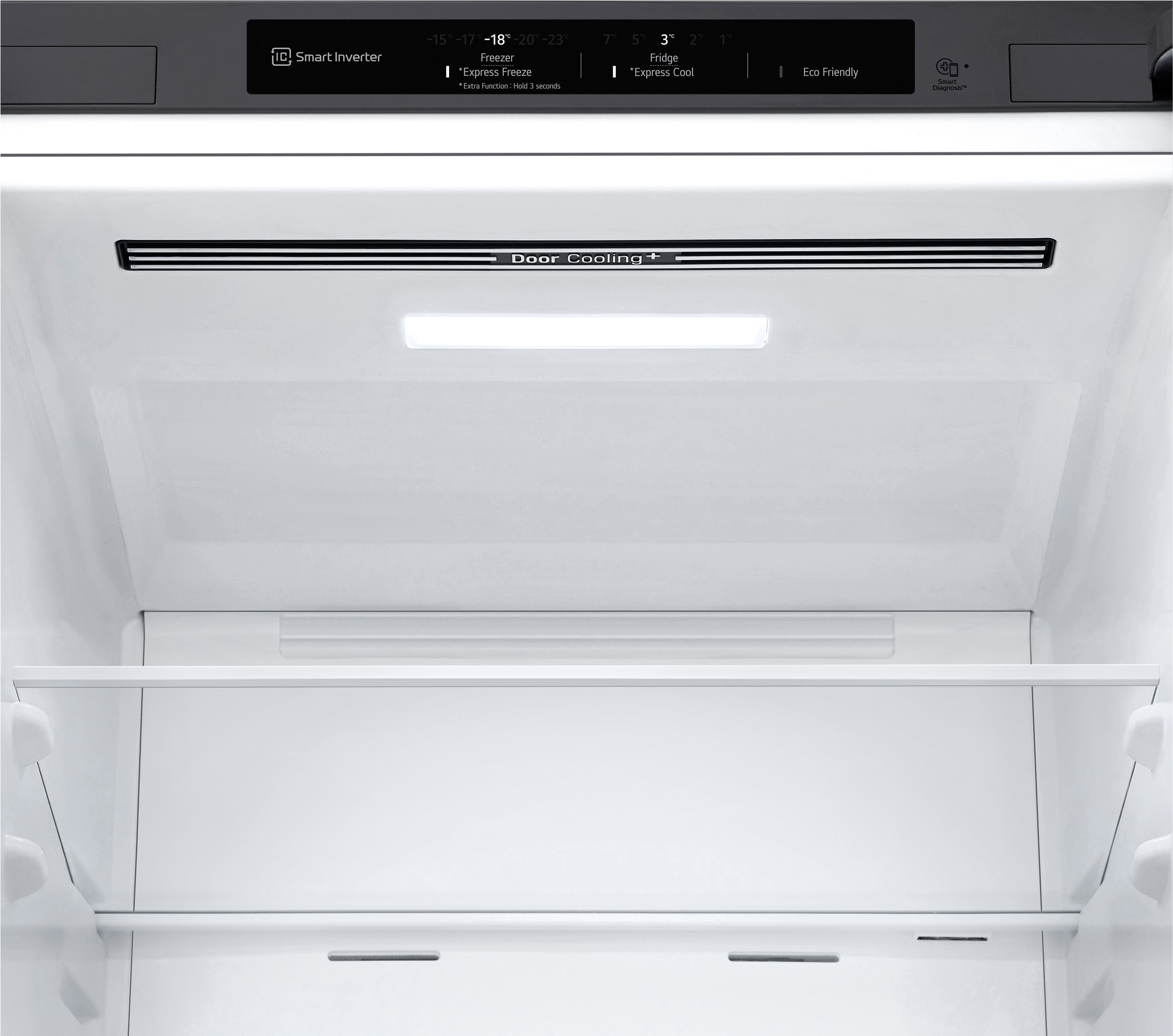 LG GBP52PZNCN1. Capacidad neta total: 381 L. Bisagra para puerta: Derecho, Tipo de visualizador: LED. Clase climática: SN-T, Nivel de ruido: 35 dB. Frigorífico, capacidad neta: 277 L, Antiescarcha (nevera), Sistema multi-flujo de aire (nevera), Luz interior de la nevera. Congelador, capacidad neta: 107 L, Capacidad de congelación: 10 kg/24h, Antiescarcha (congelador). Compartimiento de zona fresca. Clase de eficiencia de energía: C, Consumo de energía anual: 172 kWh