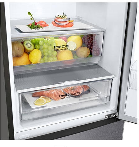 NatureFRESH\nDeleita a tus sentidos\nEl sistema NatureFRESH controla de forma precisa la temperatura de tu frigorífico para conservar los alimentos frescos durante más tiempo. Cuenta con 9 salidas de aire junto a cada balda.\n\nDoorCooling+\nEnfría hasta un 32% más rápido\nLa salida de aire en la parte superior frontal del frigorífico en forma de cascada permite enfriar bebidas y alimentos más rápido y reduce la diferencia de temperatura entre el interior y la puerta del frigorífico.\n\nFRESHConverter\nAdapta la temperatura\nCajón multitemperatura ""especial cervezas"": adapta la temperatura del cajón (entre -2ºC y 3ºC) a cada tipo de alimento: cerveza, verduras, carne o pescado.\n\nCompresor Smart Inverter Compressor\nMáxima eficiencia y durabilidad con 10 años de garantía\nEl Smart Inverter Compressor™de LG lleva la eficiencia energética a un nivel superior, ahorrando dinero y cuidando del planeta. Además, cuenta con 10 años de garantía en el mismo.