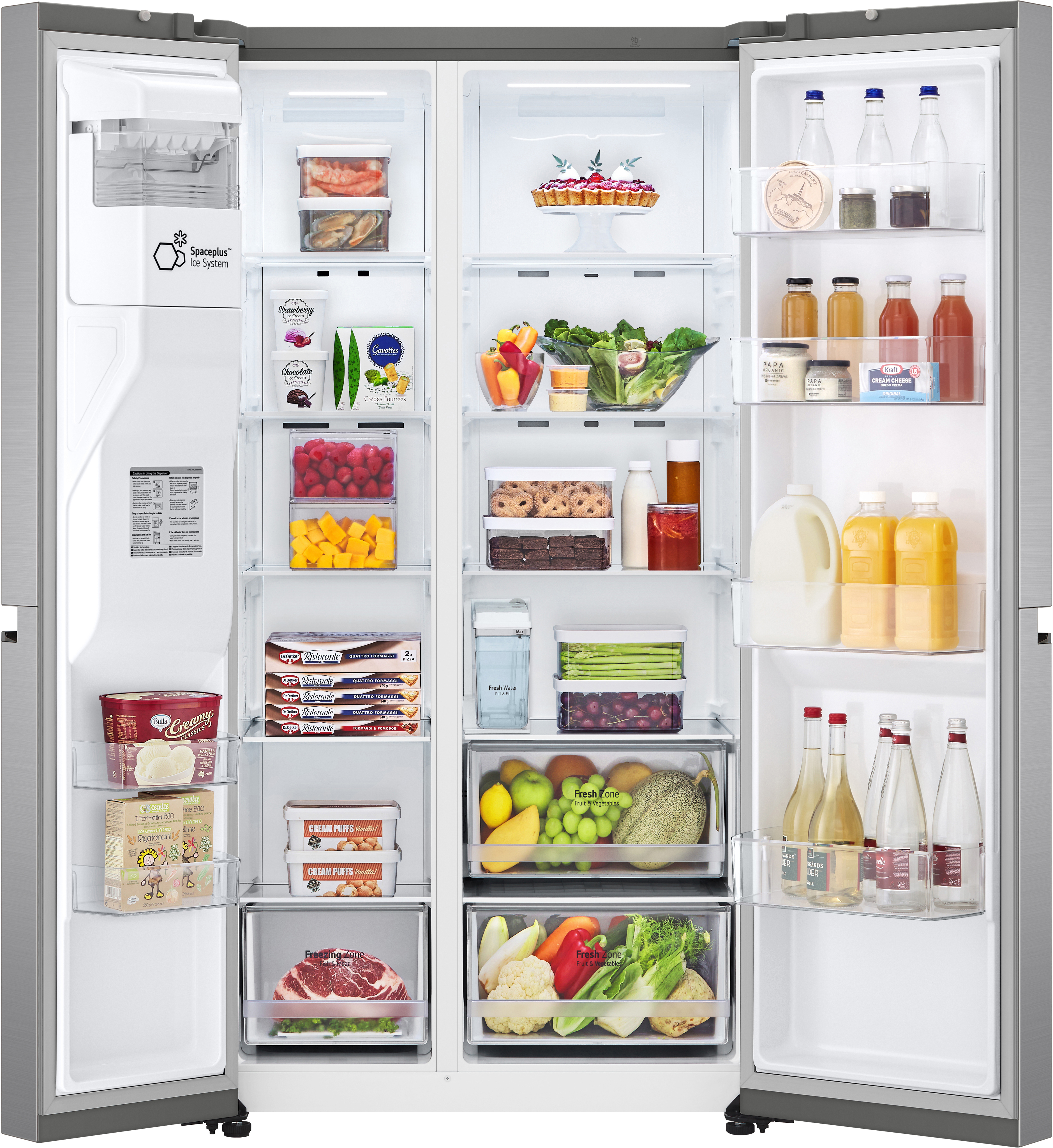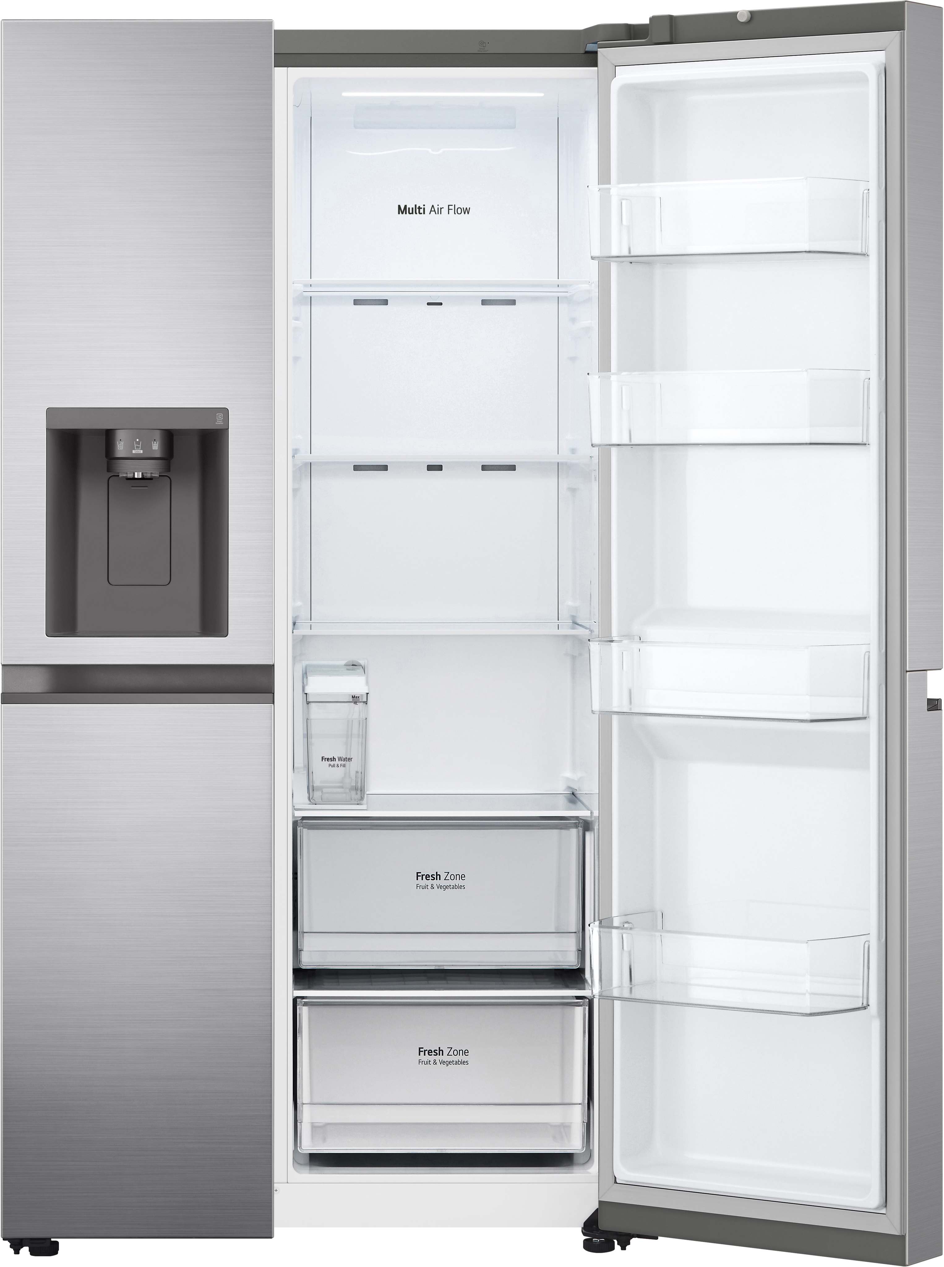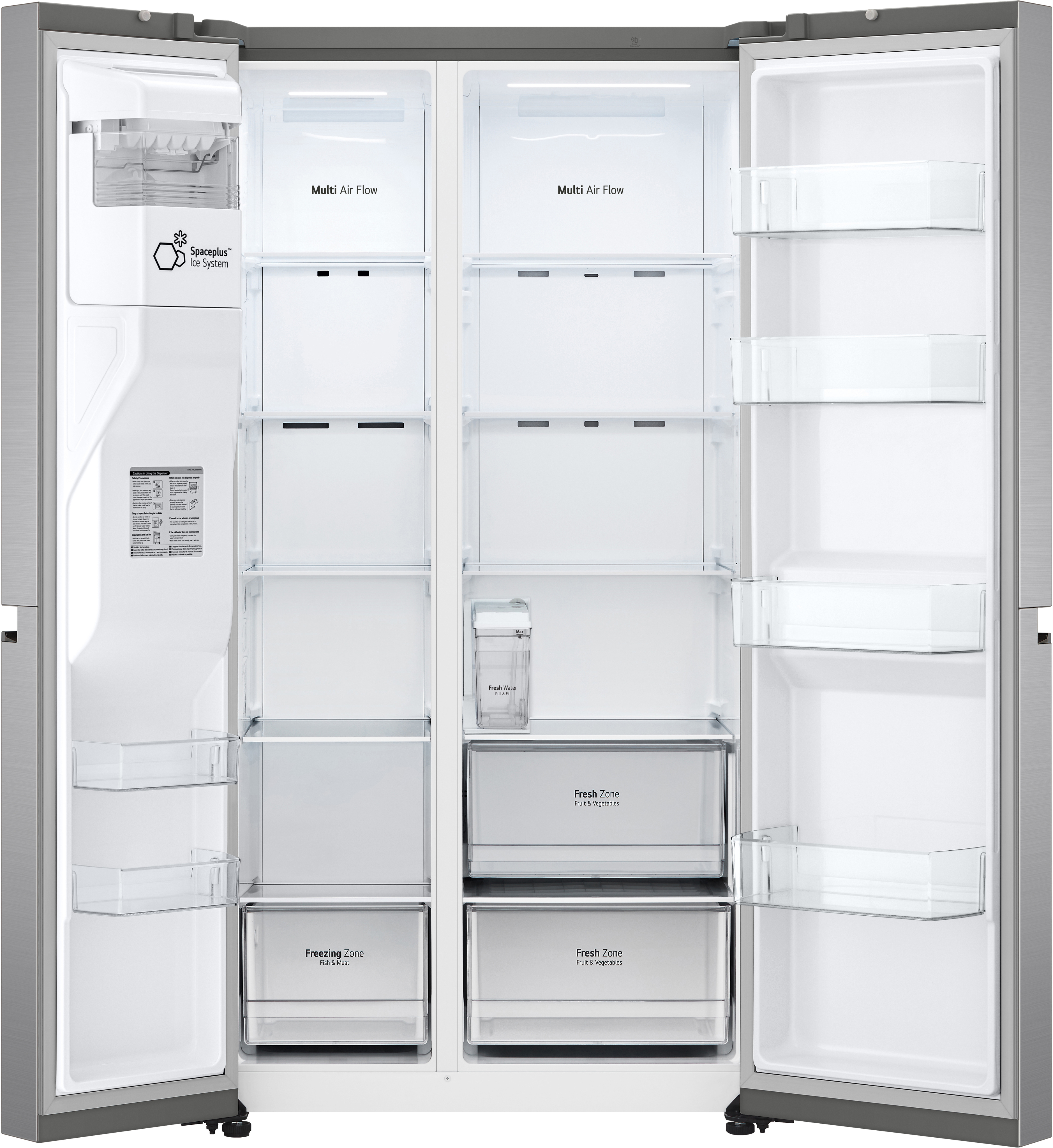 LG GSLV51PZXM. Tipo de instalación: Independiente, Diseño de producto: Puerta americana, Color del producto: Acero inoxidable. Capacidad neta total: 635 L, Clase climática: T, Clase de emisión de ruido: C. Frigorífico, capacidad neta: 416 L, Frigorífico, capacidad bruta: 424 L. Congelador, capacidad neta: 219 L, Posición congelada: Lateral, Capacidad de congelación: 12 kg/24h. Clase de eficiencia de energía: F, Consumo de energía anual: 430 kWh