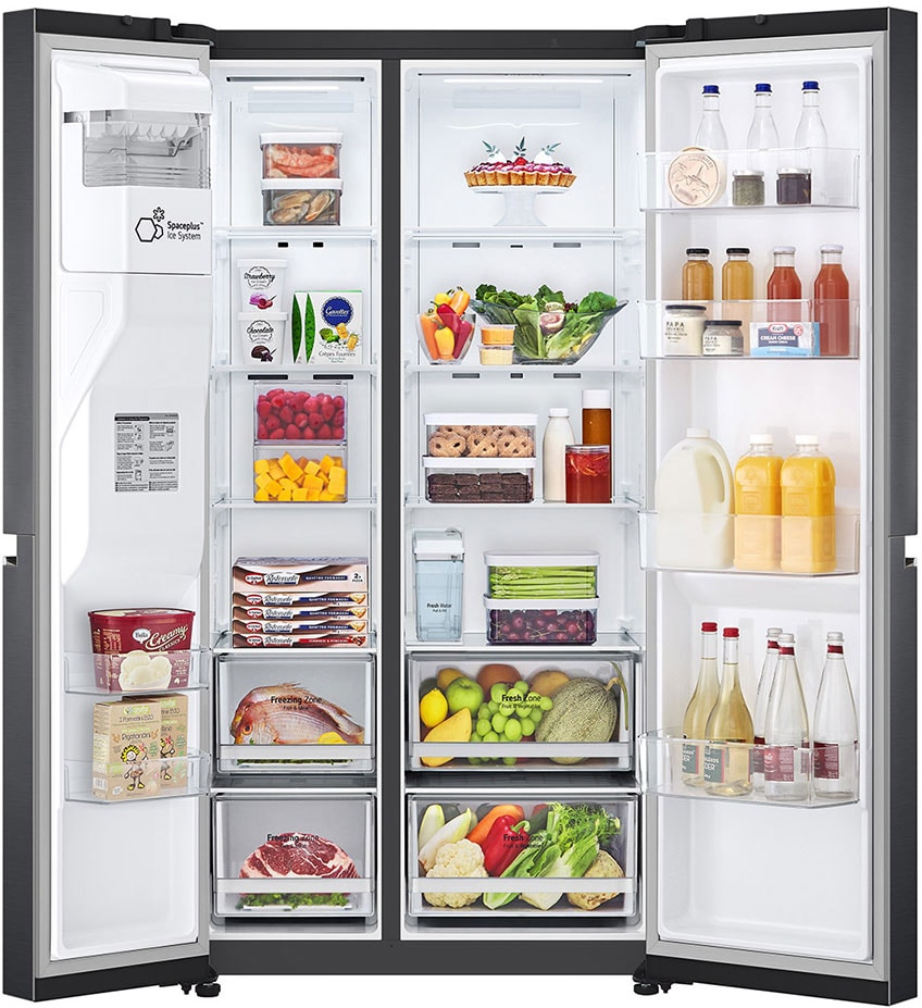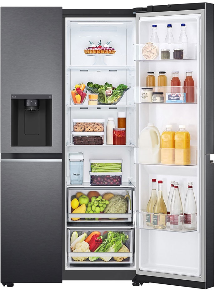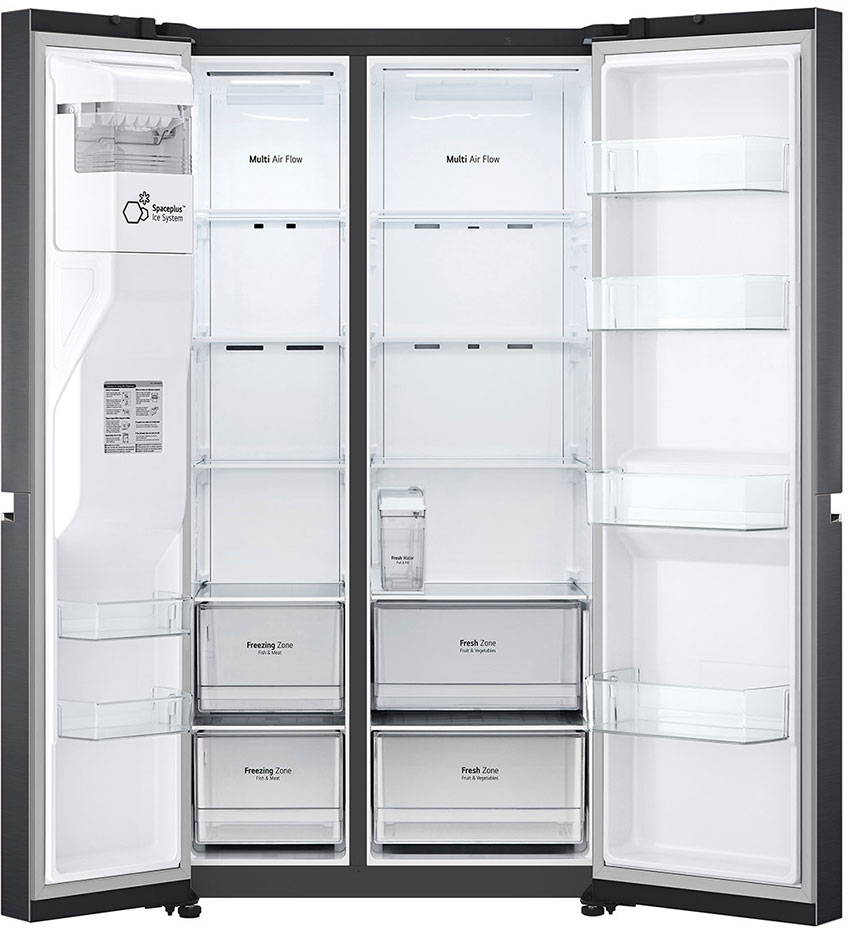 LG GSLV71MCTE. Tipo de instalación: Independiente, Diseño de producto: Puerta americana, Color del producto: Negro. Capacidad neta total: 635 L, Clase climática: T, Clase de emisión de ruido: C. Frigorífico, capacidad neta: 416 L. Congelador, capacidad neta: 219 L, Posición congelada: Lateral, Capacidad de congelación: 12 kg/24h. Clase de eficiencia de energía: E, Consumo de energía anual: 350 kWh, Escala de eficiencia energética: De la A a la G