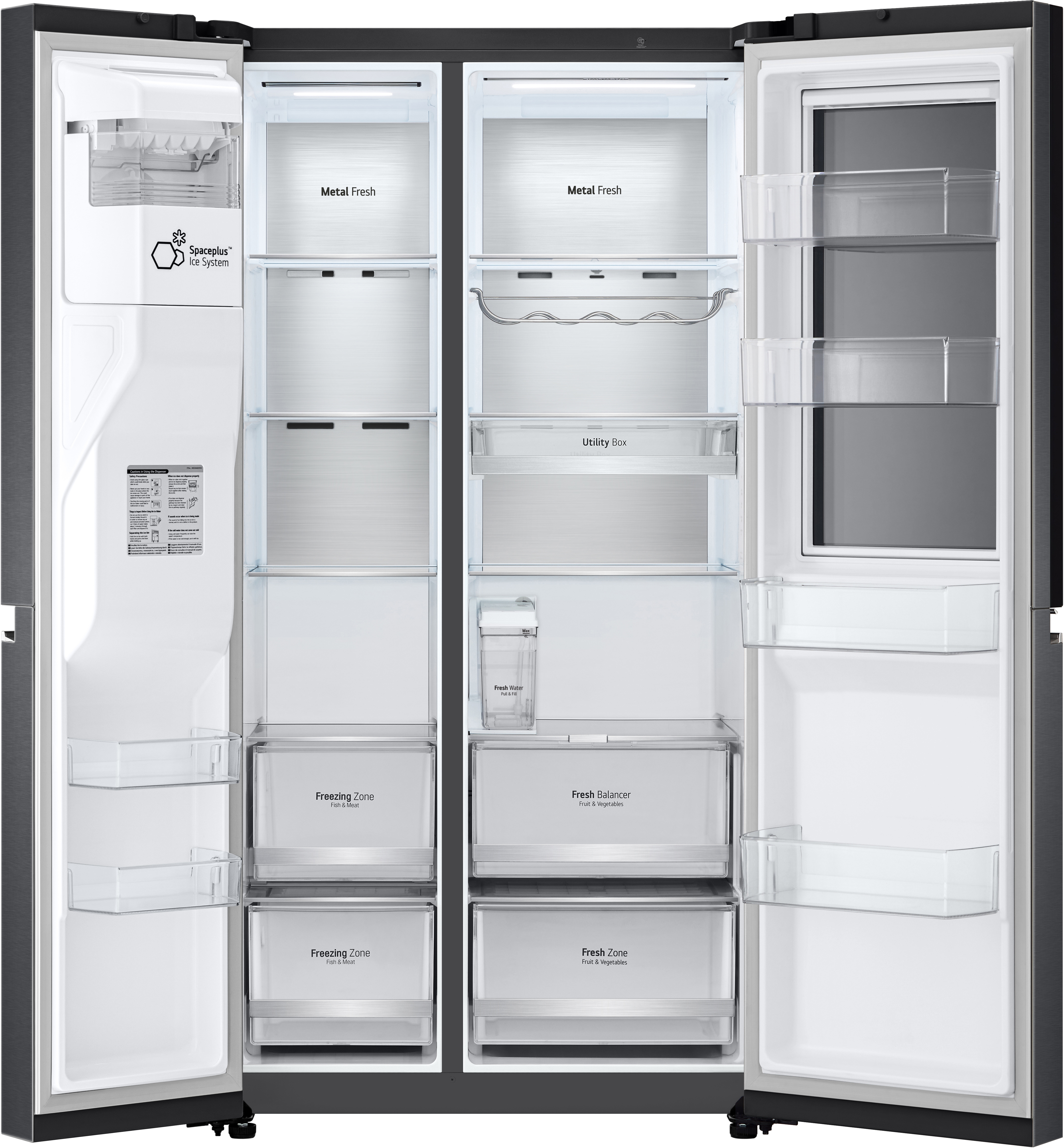 LG GSXV91MCAE. Tipo de instalación: Independiente, Diseño de producto: Puerta americana, Color del producto: Negro. Capacidad neta total: 635 L, Clase climática: T, Clase de emisión de ruido: C. Frigorífico, capacidad neta: 416 L. Congelador, capacidad neta: 219 L, Posición congelada: Lateral, Capacidad de congelación: 12 kg/24h. Clase de eficiencia de energía: E, Consumo de energía anual: 348 kWh, Escala de eficiencia energética: De la A a la G