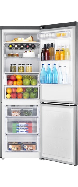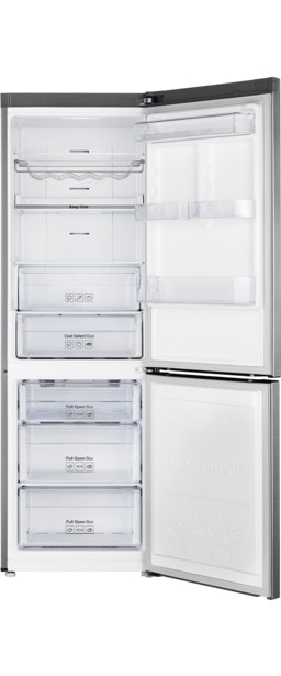 Samsung RB33N341MSA. Diseño: Independiente. Capacidad neta total: 315 L. Bisagra para puerta: Derecho. Clase climática: SN-T, Nivel de ruido: 38 dB. Frigorífico, capacidad neta: 217 L, Antiescarcha (nevera), Sistema multi-flujo de aire (nevera), Luz interior de la nevera. Congelador, capacidad neta: 98 L, Capacidad de congelación: 13 kg/24h, Antiescarcha (congelador). Clase de eficiencia de energía: A+++, Consumo de energía anual: 175 kWh. Color del producto: Grafito