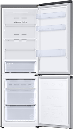 Samsung RB34T600CSA. Capacidad neta total: 344 L, Clase climática: SN-T, Nivel de ruido: 35 dB. Frigorífico, capacidad neta: 230 L, Antiescarcha (nevera), Luz interior de la nevera, Frigorífico, número de compartimentos: 4, Número de compartimientos para verduras: 1. Congelador, capacidad neta: 114 L, Capacidad de congelación: 8 kg/24h. Clase de eficiencia de energía: C, Consumo de energía anual: 163 kWh. Color del producto: Grafito, Metálico