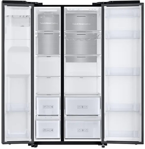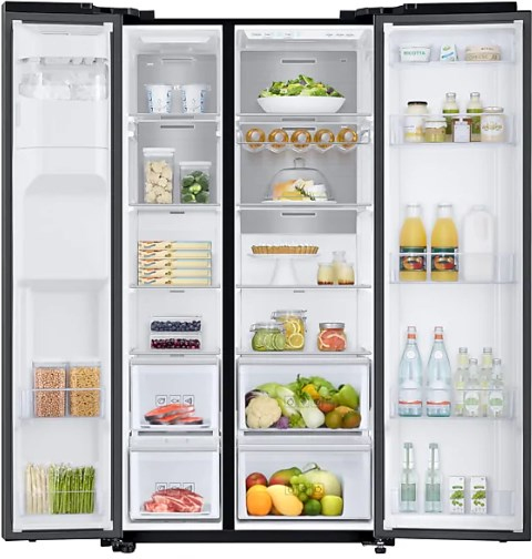Samsung RS68N8241B1. Tipo de instalación: Independiente, Color del producto: Negro, Diseño de producto: Puerta americana. Capacidad neta total: 617 L, Clase climática: SN-T, Nivel de ruido: 39 dB. Frigorífico, capacidad neta: 407 L, Frigorífico, capacidad bruta: 427 L. Congelador, capacidad neta: 210 L, Posición congelada: Lateral, Capacidad de congelación: 12 kg/24h. Consumo de energía anual: 389 kWh