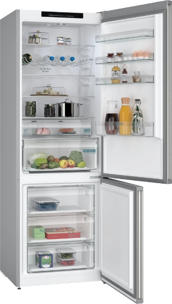 Siemens iQ300 KG49N2IDF. Capacidad neta total: 440 L. Bisagra para puerta: Derecho. Clase climática: SN-T, Nivel de ruido: 35 dB. Frigorífico, capacidad neta: 311 L, Antiescarcha (nevera), Sistema multi-flujo de aire (nevera), Luz interior de la nevera. Congelador, capacidad neta: 129 L, Capacidad de congelación: 11 kg/24h, Antiescarcha (congelador). Compartimiento de zona fresca. Clase de eficiencia de energía: D, Consumo de energía anual: 223 kWh. Color del producto: Acero inoxidable