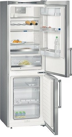 Siemens KG36EAI43. Diseño: Independiente. Capacidad neta total: 302 L. Bisagra para puerta: Derecho. Clase climática: SN-T, Nivel de ruido: 38 dB. Frigorífico, capacidad neta: 214 L, Luz interior de la nevera, Frigorífico, número de compartimentos: 3, Número de compartimientos para verduras: 2. Congelador, capacidad neta: 88 L, Capacidad de congelación: 14 kg/24h. Compartimiento de zona fresca. Clase de eficiencia de energía: A+++, Consumo de energía anual: 149 kWh. Color del producto: Acero inoxidable