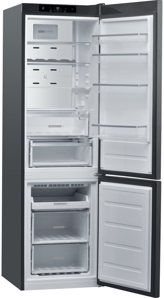 DUAL NO FROST\n\nDos sistemas independientes de enfriamiento No Frost crean el ambiente ideal libre de escarcha para la conservación de los alimentos, asegurando la temperatura y la humedad ideales y evitando los olores que se mezclan entre las cavidades. Coloque frutas y verduras en cualquier lugar de la nevera, Dual No Frost las mantiene frescas hasta 15 días.\n\n6TH SENSE PRECISION CONTROL\n\nTecnología que restaura rápidamente la temperatura y humedad ideales. La tecnología 6TH SENSE detecta constantemente las variaciones de temperatura y humedad debido a causas externas (es decir, la apertura de la puerta) y restaura rápidamente la temperatura y humedad ideales para una conservación óptima de los alimentos tanto en la nevera como en la en el congelador. Evitar quemaduras en los alimentos almacenados en el congelador.\n\nALARMA TEMPERATURA\n\nDiseñado para tu tranquilidad.La alarma de temperatura te avisa si hay un aumento de la temperatura en tu frigorífico, haciéndote evitar un potencial desperdicio de comida.\n\nFAST COOLING\n\nEnfriamiento rápido.La temperatura en tu frigorífico baja de inmediato, cuando se almacena nueva comida. Sensores integrados ajustan automáticamente la temperatura de enfriamiento, asegurando un bajo consumo energético y un frescor prolongado.\n\nFRESH BOX+\n\nUn cajón con control deslizante de control de humedad integrado que le permite mantener sus frutas y verduras frescas hasta 15 días.\n\nFRESH PAD\n\nPara mantener las frutas y verduras frescas. Una almohadilla innovadora integrada en Fresh Box + garantiza la mejor conservación de los alimentos. Fresh Pad elimina la humedad de las frutas y verduras y previene activamente la acumulación de bacterias dañinas para mantenerlas frescas. El patrón de la rejilla separa las frutas y verduras de la humedad que liberan cuando se almacenan, mientras que un aditivo antibacteriano especial reduce las bacterias dañinas hasta en un 99.9% en la superficie de la rejilla para verduras. \n\nBANDEJA DE USO FÁCIL\n\nPara encontrar de inmediato cuáles son sus alimentos de uso más frecuente. Una bandeja especial que se desliza para ver mejor y acceder fácilmente a los alimentos de uso más frecuente almacenados en el congelador.\n\nANTIHUELLAS\n\nFácil de limpiar. El tratamiento antihuellas asegura una fácil y rápida remoción de polvo, huellas y rasguños. Limpiar nunca había sido tan fácil.\n\nVENTILACIÓN\n\nEste Combi Whirlpool dispone de un ventilador que ofrece un suave y uniforme flujo de aire en la cavidad de tu electrodoméstico, para una mejorada ventilación.\n\nNOFROST\n\nSin necesidad de descongelar. La tecnología NoFrost reduce la humedad del congelador, evitando la formación de hielo.\n\nAHORRO ENERGÉTICO\n\nRecuperación de la temperatura ultra-rápida. La innovadora tecnología Ahorro energético ofrece una recuperación de la temperatura muy rápida, garantizando un bajo consumo energético y un frescor