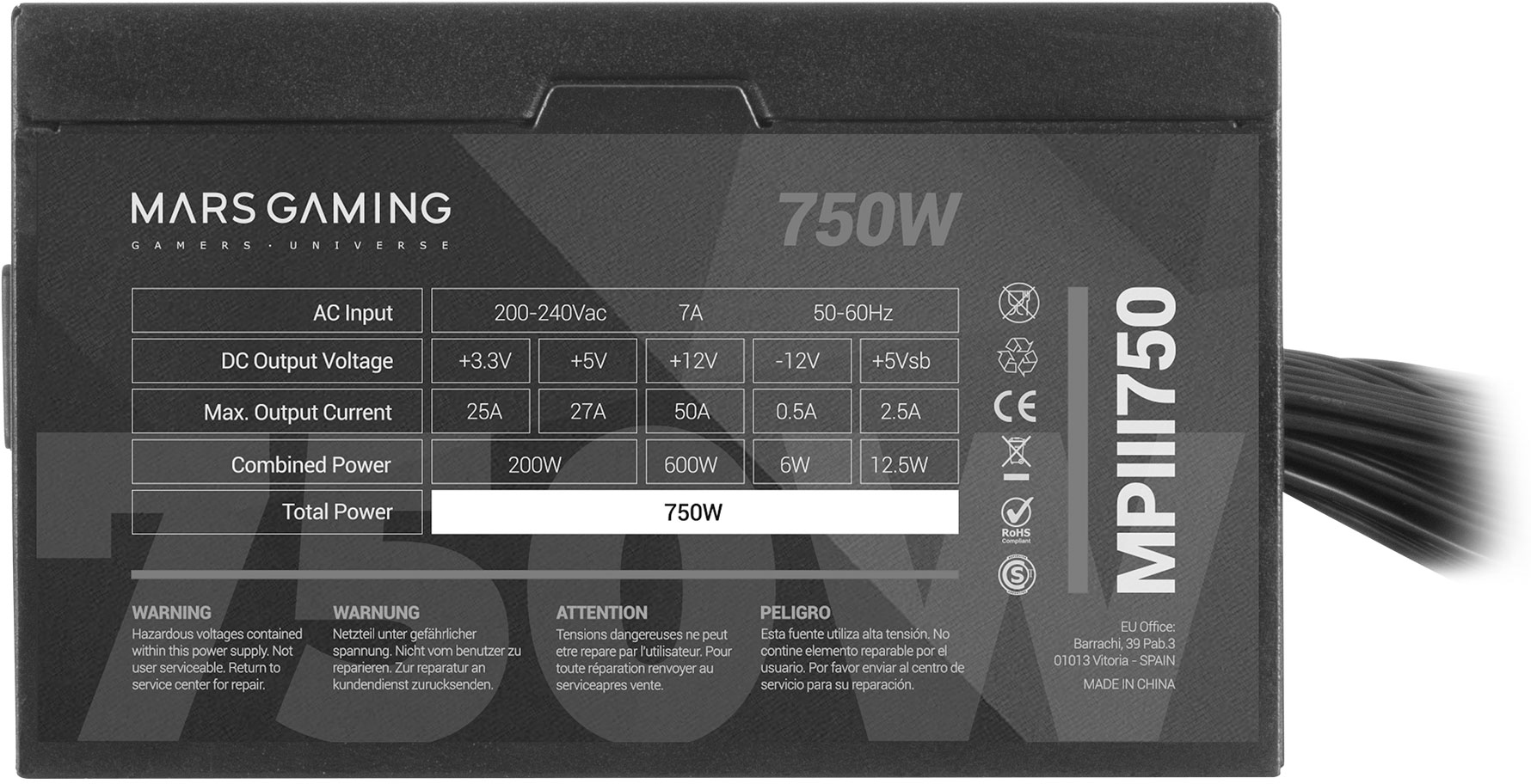 Opiniones Mars Gaming MPIII750 Fuente Alimentación PC 750W A