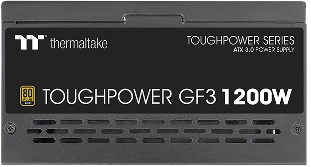 Thermaltake Toughpower GF3. Potencia total: 1200 W, Voltaje de entrada AC: 100 - 240 V, Frecuencia de entrada AC: 50/60 Hz. Alimentador de energía para tarjeta madre: 24-pin ATX, Longitud del cable de alimentación de la placa base: 60 cm, Longitud del cable de alimentación SATA: 500,650,800,950 mm. Utilizar con: PC, Certificación 80 PLUS: 80 PLUS Gold, Tecnología de rodamientos: FDB. Color del producto: Negro, Diámetro de ventilador: 13,5 cm, Número de ventiladores: 1 Ventilador(es). Ancho: 150 mm, Profundidad: 160 mm, Altura: 86 mm