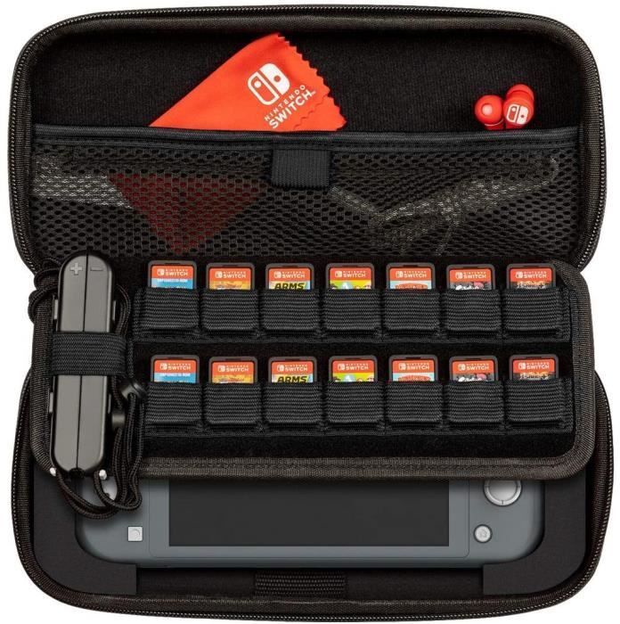 Compatible con nintendo switch y nintendo switch lite La cubierta rígida de eva almacena la consola, hasta 14 juegos y varios accesorios del juego Bolsillo ajustable con velcro para accesorios con asa de transporte de nailon para un fácil almacenamiento