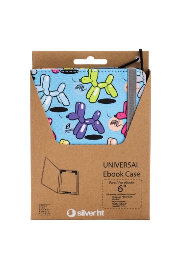 Universal 6'' Ebook Case Balloons Blue metal. Funda Universal para lectores de libro electrónico (Ebook reader).\nColor Azul metálico\nMaterial exterior PT\nMaterial interior Terciopelo\nMedidas interiores y exteriores 18,5x14x2 cm\nCompatible con lectores de libro electrónico de hasta 6’’ (Kobo Aura 2, BQ Cervantes, Sony Reader, Amazon Kindle, Wolder, etc).""\nIncluye Ganchos de sujeción blandos fabricados con TPU – no dañan la tablet.Ángulo de visión multi-ajustable. Cierre de seguridad anti-apertura.\nInformación adicional\nDiseño Exclusivo SilverHT