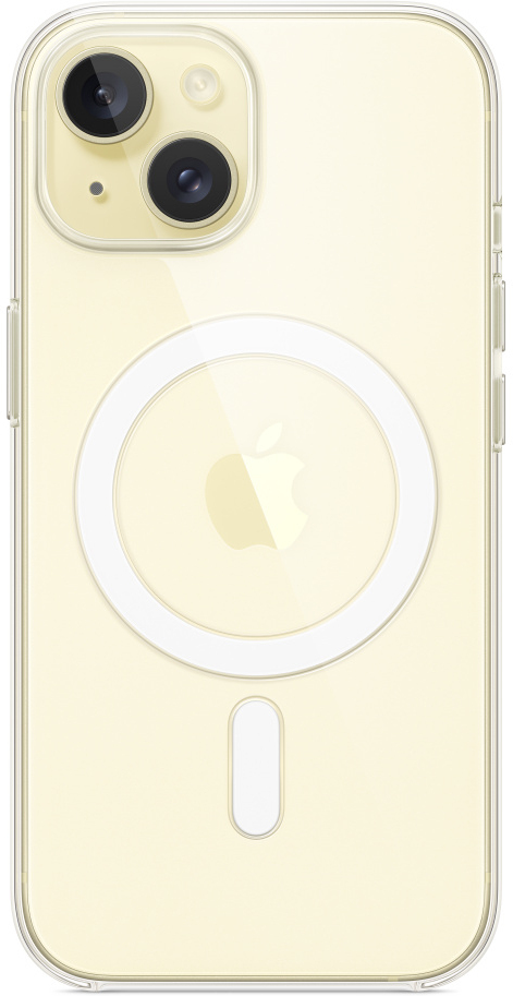 Esta funda diseñada por Apple es ligera y fácil de sujetar. Muestra el increíble acabado de color brillante del iPhone 15 al tiempo que ofrece una protección extra.\n\nComo está fabricada con una mezcla de policarbonato transparente y materiales flexibles, se adapta a la perfección a los botones para que puedas usarlos fácilmente. Tanto la superficie exterior como la interior cuentan con un revestimiento resistente a los arañazos. Y todos los materiales se han optimizado para que no amarilleen con el tiempo.\n\nGracias a los imanes que se alinean a la perfección con el iPhone 15, se pone y se quita con total comodidad y permite una carga inalámbrica más rápida. Además, no hace falta que la saques para cargar el iPhone: basta con acoplar el cargador MagSafe o colocar el teléfono en una base de carga inalámbrica Qi.\n\nComo todas las fundas de Apple, se ha sometido a miles de horas de pruebas a lo largo de todo el proceso de diseño y fabricación. No solo es bonita, sino ideal para que protejas tu iPhone de arañazos y caídas.\n\n