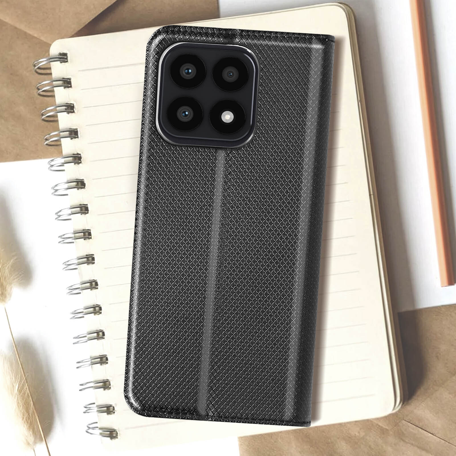 Funda protectora completa del Honor X8a. Cubierta de polipiel, textura de rayado. Diseño elegante y con estilo. Almacenamiento de tarjetas. Solapa ajustable con función de soporte. Solapa magnética. Funciones accesibles. • Características y Puntos fuertes: Funda especialmente diseñada para tu Honor X8a. Funda de polipiel con costuras visibles y acabado brillante para un aspecto elegante. Protege eficazmente tu teléfono de las caídas y arañazos cotidianos. El cierre magnético permite cerrar la funda para mayor seguridad