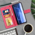 Funda libro billetera con función soporte para Realme X3 Superzoom , Realme X50 , Realme 6 Pro. Hecha en semicuero, esta funda asegura una protección total contra los golpes y arañazos del día a día. Su elegancia y funcionalidades hacen que destaque.