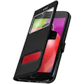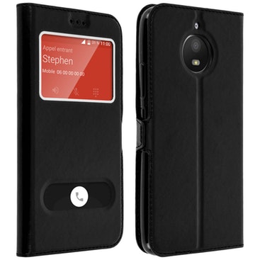 Avizar Funda Motorola Moto E4 Plus libro con doble ventana Carcasa de silicona - Negro