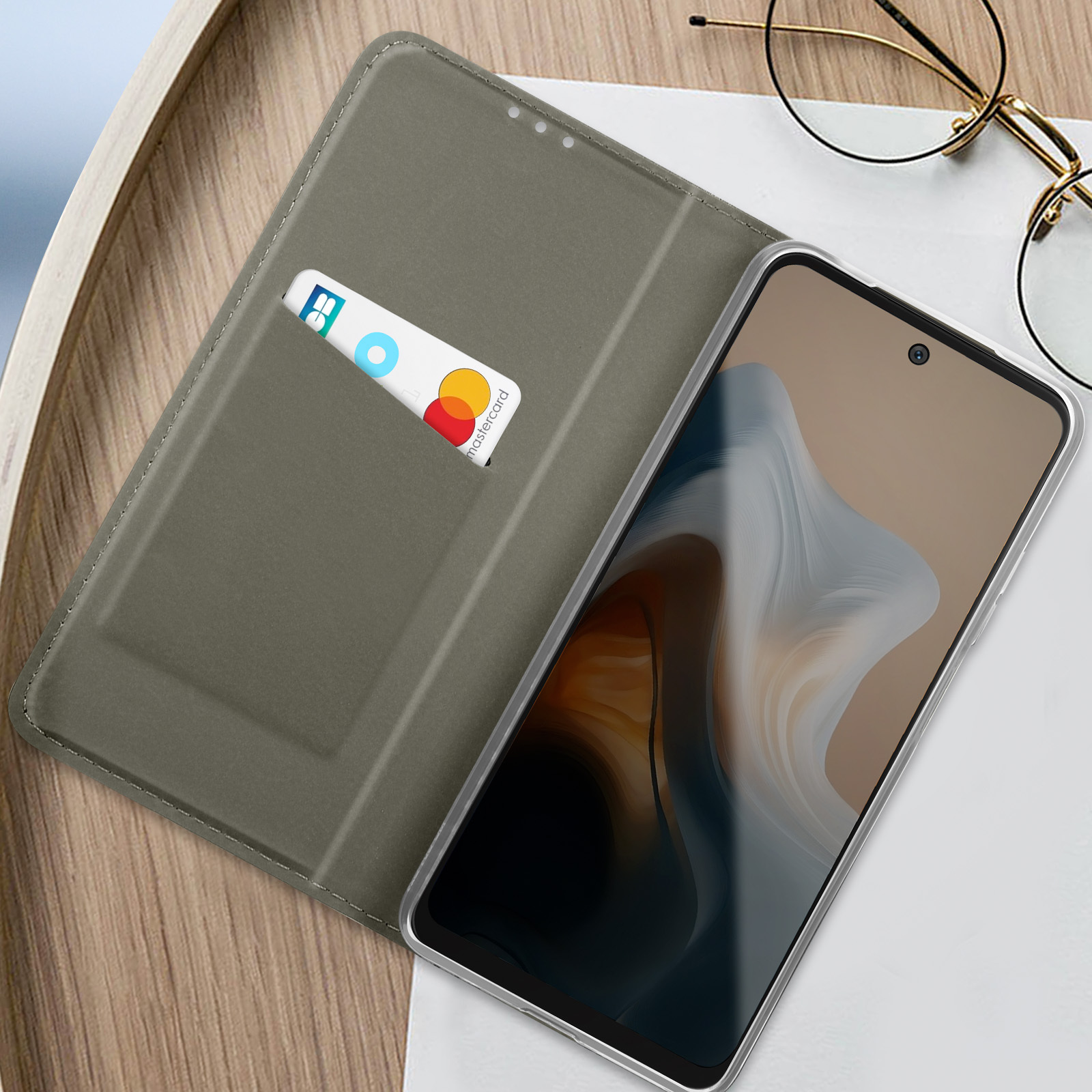 Funda para proteger completamente tu Motorola Moto G34. Compartimento para tarjetas integrado. Cubierta de polipiel brillante. Función de soporte de vídeo. Cierre magnético. Carcasa de silicona suave. Funciones accesibles.Características y Puntos fuertes: Funda especialmente diseñada para tu Motorola Moto G34Un diseño en efecto de imitación de cuero con acabado de costura para combinar robustez y sobriedadProtege eficazmente el teléfono contra golpes, caídas y peligros cotidianosLa carcasa interior de silicona se ajusta a los bordes del teléfono para una doble protección