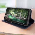 Funda de polipiel para Motorola Moto E13. Ofrece protección integral contra golpes y arañazos, además de un aspecto elegante. 3 compartimentos para tarjetas y un bolsillo lateral. Incluye función de soporte para vídeos y una correa de muñeca. • Características y Puntos fuertes: Funda protectora diseñada para el Motorola Moto E13. Proporciona una protección total envolviendo la parte trasera, los laterales y la pantalla de tu smartphone. 3 compartimentos para tarjetas + bolsillo lateral para billetes integrados en el forro de la solapa. Cubierta de polipiel con efecto patinado para un toque cuidado y elegante