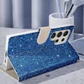 Funda para Samsung Galaxy S23 Ultra. Protección integral para tu teléfono contra golpes y arañazos. Diseño brillante con correa integrada. Solapa para guardar tarjetas y billetes. Soporte para vídeo. Carcasa interior de silicona. Cierre magnético. • Características y Puntos fuertes: Funda Disco Glam Edition en polipiel, que ofrece estilo y brillo a tu Samsung Galaxy S23 Ultra. Haz que tu smartphone brille con su recubrimiento de purpurina de bola de discoteca. Con correa de purpurina para un look aún más chic. Función de soporte de vídeo horizontal para sacar el máximo partido a tu dispositivo