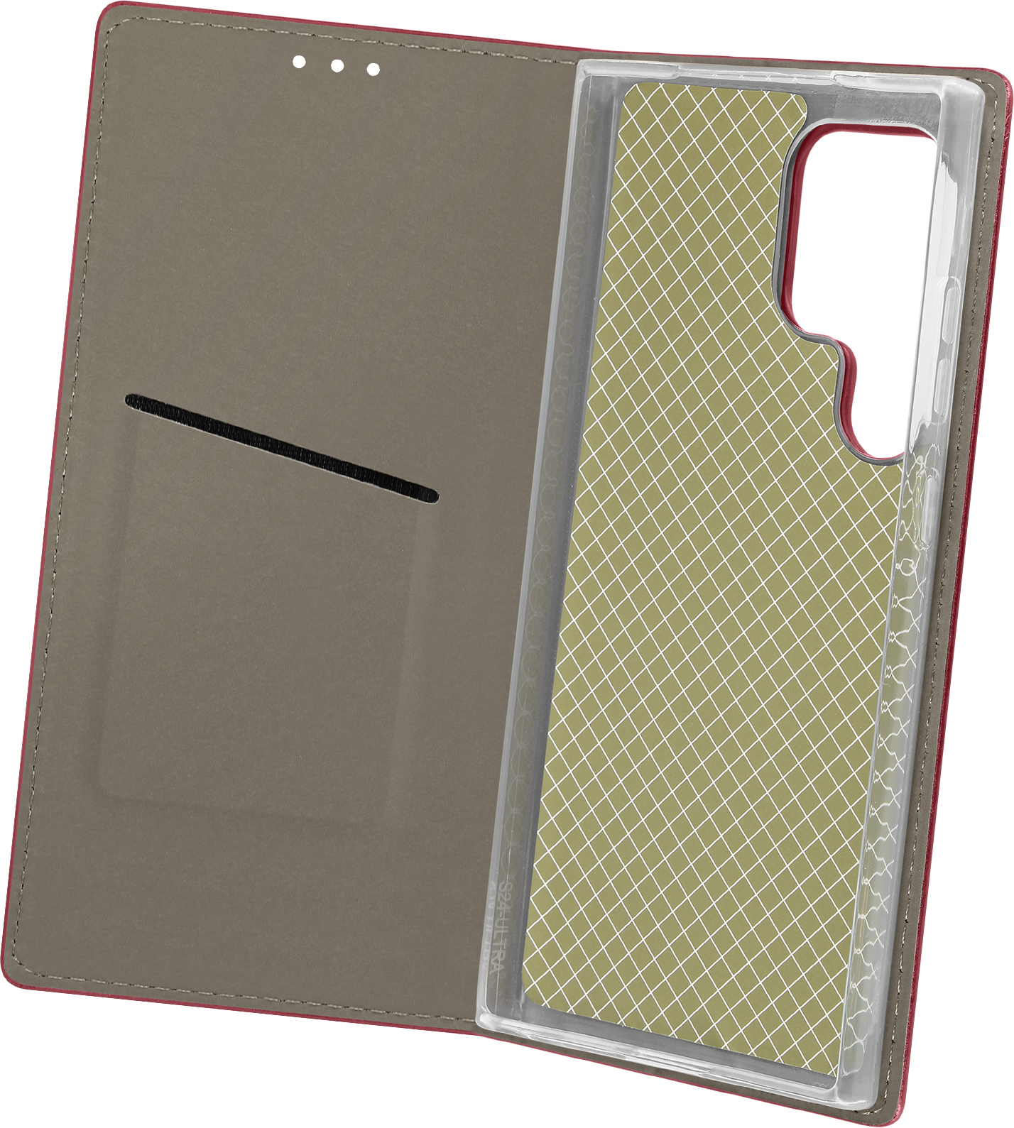 Funda para proteger completamente tu Samsung Galaxy S24 Ultra. Compartimento para tarjetas integrado. Cubierta de polipiel brillante. Función de soporte de vídeo. Cierre magnético. Carcasa de silicona suave. Funciones accesibles.Características y Puntos fuertes: Funda especialmente diseñada para tu Samsung Galaxy S24 UltraUn diseño en efecto de imitación de cuero con acabado de costura para combinar robustez y sobriedadProtege eficazmente el teléfono contra golpes, caídas y peligros cotidianosLa carcasa interior de silicona se ajusta a los bordes del teléfono para una doble protección