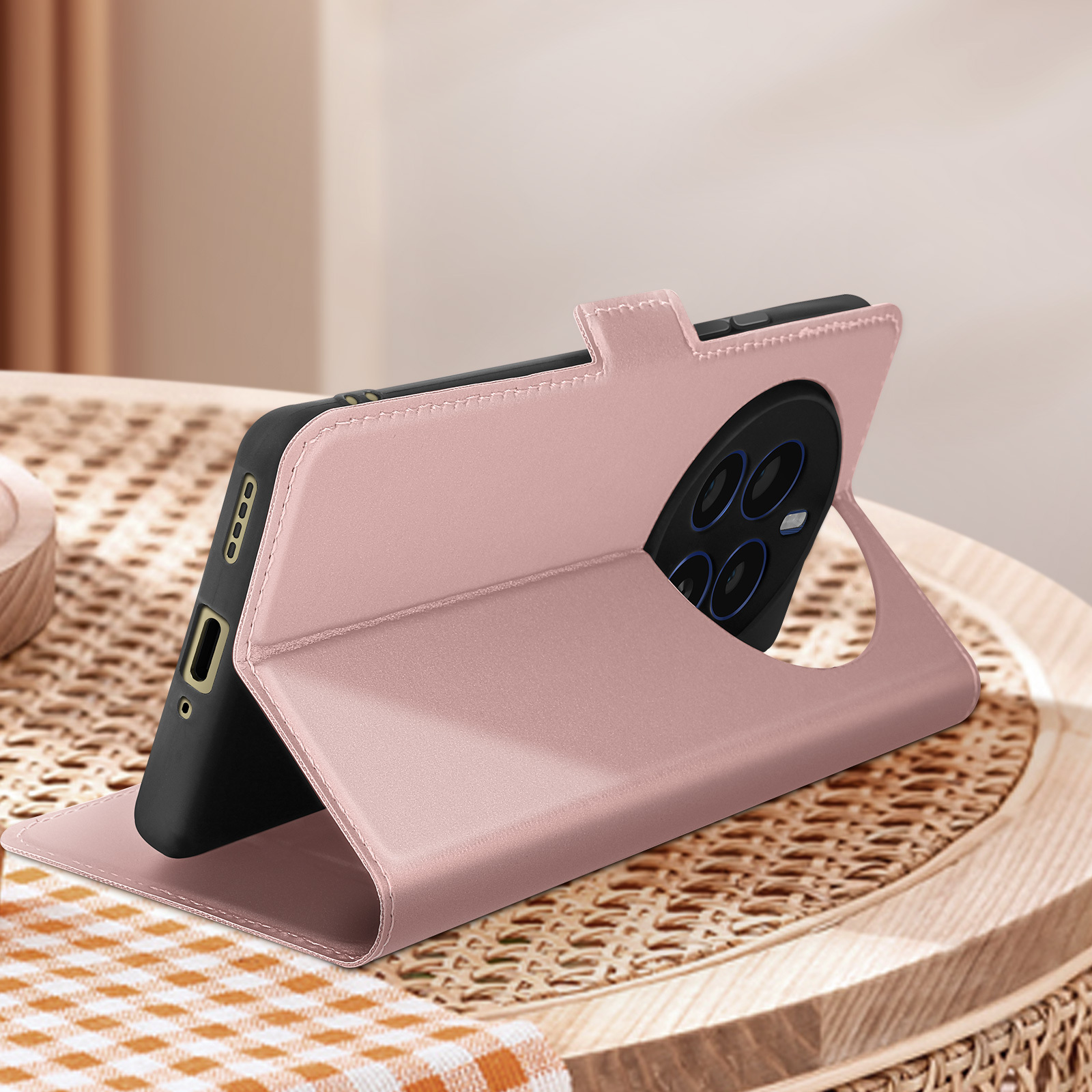 Avizar Funda Realme 12 Pro Plus 5G Tarjetero Soporte de vídeo Rosa dorado