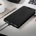 Funda con tapa vertical para Samsung Galaxy A70. Protección total contra golpes y arañazos con lengüeta magnética. Su pliegue Soft Touch protege la pantalla de los arañazos. Diseñada a medida. Puertos y cámara accesibles