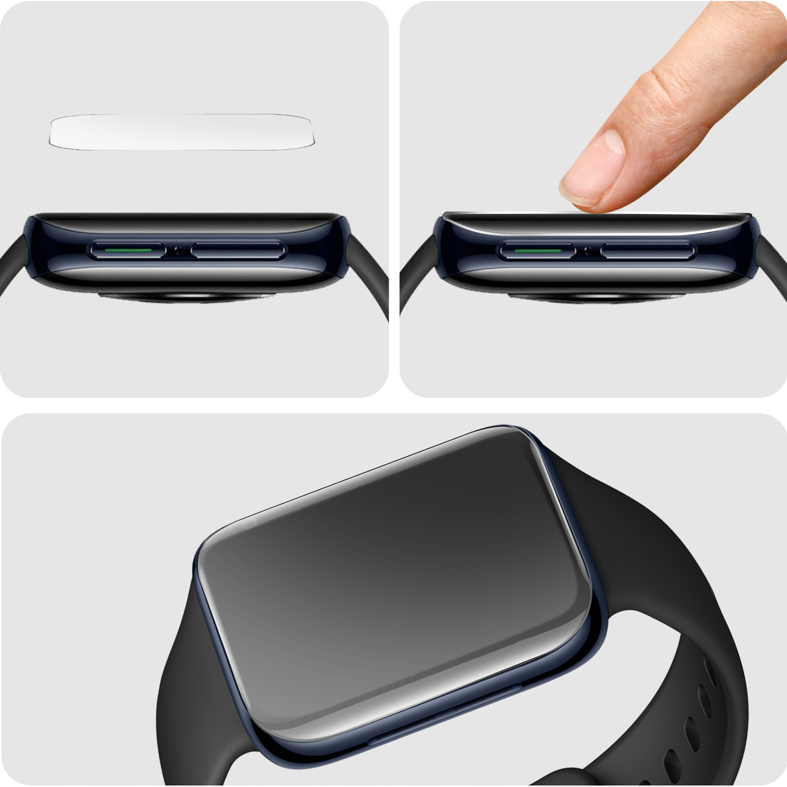 Protector de pantalla suave para Oppo Watch 46mm. Fino y ligero, se adhiere perfectamente a la pantalla. Tecnología de autocuración: di adiós a todo tipo de marcas, las imperfecciones que queden en tu pantalla desaparecerán por sí solas en 24 horas • Características y Puntos fuertes: Protector de pantalla diseñado específicamente para el Oppo Watch 46mm. Diseño de hidrogel con propiedades antiburbujas y antihuellas. Fino y ligero, para que el grosor y el espacio sean mínimos una vez instalado. La sensibilidad táctil de tu reloj conectado se conserva completamente, para un uso natural