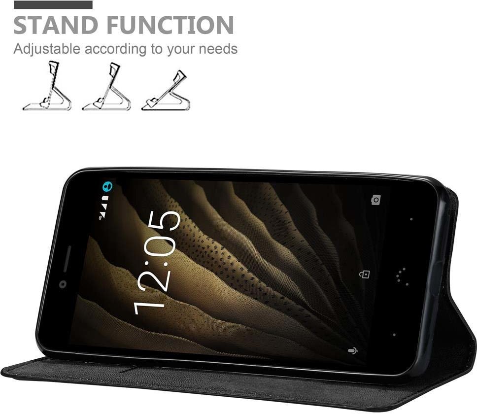 Cadorabo Funda Libro para BQ Aquaris U / U Lite en NEGRO ANTRACITA - Cubierta Proteccion con Cierre Magnetico, Tarjetero y Funcion de Suporte - Etui Case Cover Carcasa