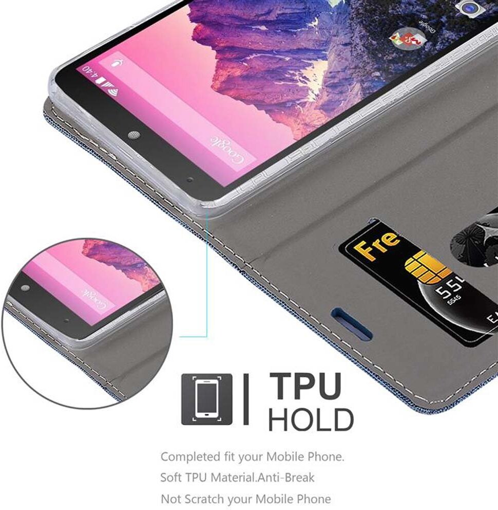 DISE?O: Funda moderna de cuero sintetico en estilo Jeans con tarjetero, funcion de Soporte y cierre magnetico invisible. La tapa se puede abrir/doblar hasta 360? y, por lo tanto, no estorba al hablar por telefono o al escribir. Gracias al cuero sintetico seleccionado y sus colores lujosos la funda es perfecta para una impresion seria. La carcasa integrada de TPU silicona se adhiere firmemente en la tapa y le da a su telefono inteligente un ajuste perfecto. FUNCIoN: La funda tiene un compartimiento para tarjetas y la funcion de Soporte horizontal. Todas las opciones del telefono se pueden utilizar sin inconveniente; las teclas y los botones son de facil alcance y los conectores quedan libremente accesibles (camara, auriculares, etc.) El telefono se inserta en la carcasa de silicona pegada a la funda y se puede quitar facilmente cuando sea necesario. CALIDAD: Se han elegido los mejores criterios para confeccionarla de manera robusta, resistente y duradera. La funda para el movil esta completamente cosida alrededor y, por dentro, forrada con una suave piel sintetica. Durante el proceso de elaboracion se ha prestado atencion a todo: costuras limpias, cavidades limpias, esquinas y bordes limpios. Para la fabricacion se utilizaron selectos y robustos cuero de imitacion y plastico. PROTECCIoN: La funda ofrece una muy buena proteccion integral. Tanto la pantalla como la parte trasera estan bien protegidos en esta funda. La carcasa silicona ofrece una proteccion adicional para las esquinas y los bordes del telefono movil. Gracias a la cerradura magnetica, el telefono inteligente queda tambien protegido, por ejemplo, dentro de un bolso de mano. OTROS: A pesar de la buena proteccion, recomendamos una pelicula protectora para la pantalla. Esta proporciona proteccion adicional contra ara?azos en la pantalla y esta disponible en nuestra tienda. ?El telefono inteligente, el dinero y las tarjetas que se muestran NO estan incluidos!