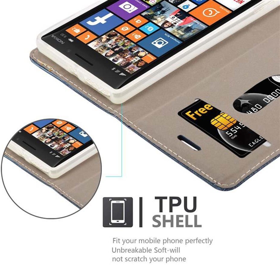 Cadorabo Funda Libro para Nokia Lumia 929 / 930 en AZUL OSCURO NEGRO - Cubierta Proteccion con Cierre Magnetico, Tarjetero y Funcion de Suporte - Etui Case Cover Carcasa